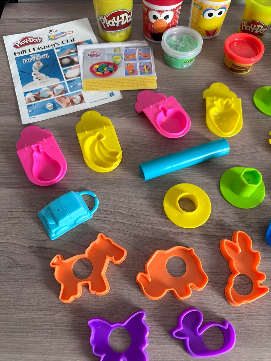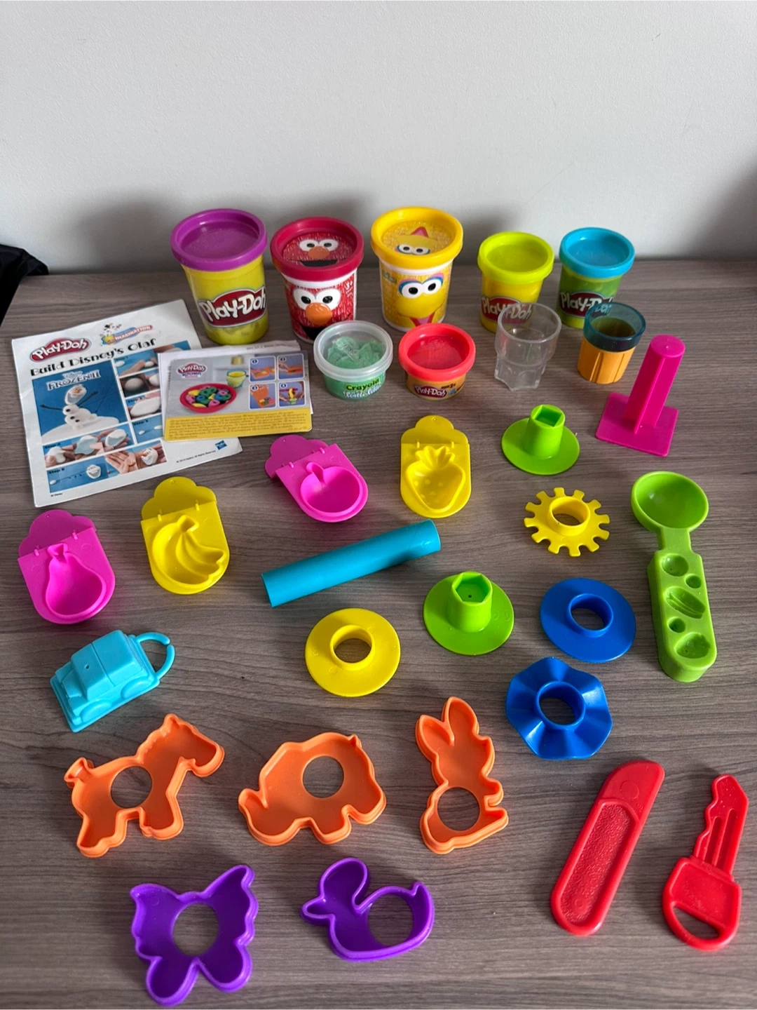 Used Play-Doh set includes several tubs of colourful dough and various shaping tools. It comes with cutters shaped like animals and characters, plus extruders and stamps. Perfect for imaginative fun and creative building projects!