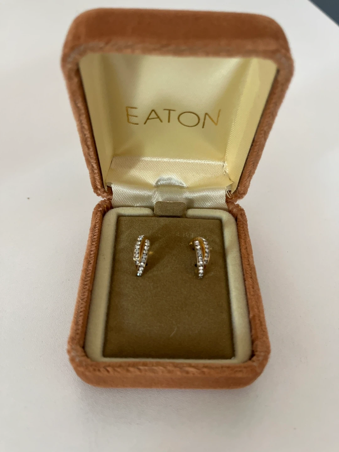 Selling a pair of gold tone earrings from Eaton. They come in the original box.