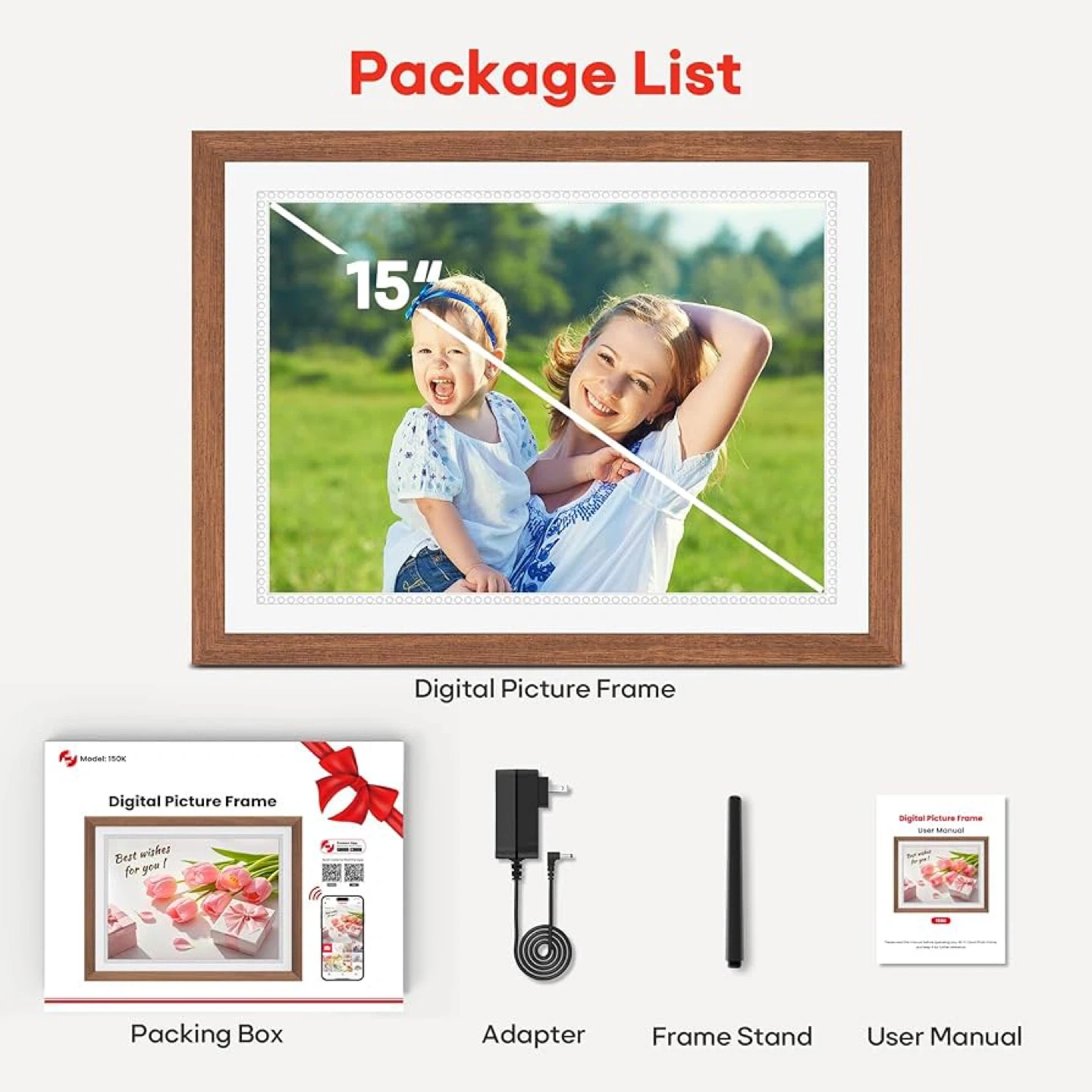 Brand new Frameo 15" Digital Picture Frame Large WiFi Electronic Photo Frame 32GB Memory IPS Touch Screen Slideshow Share Moments Remotely Anywhere.