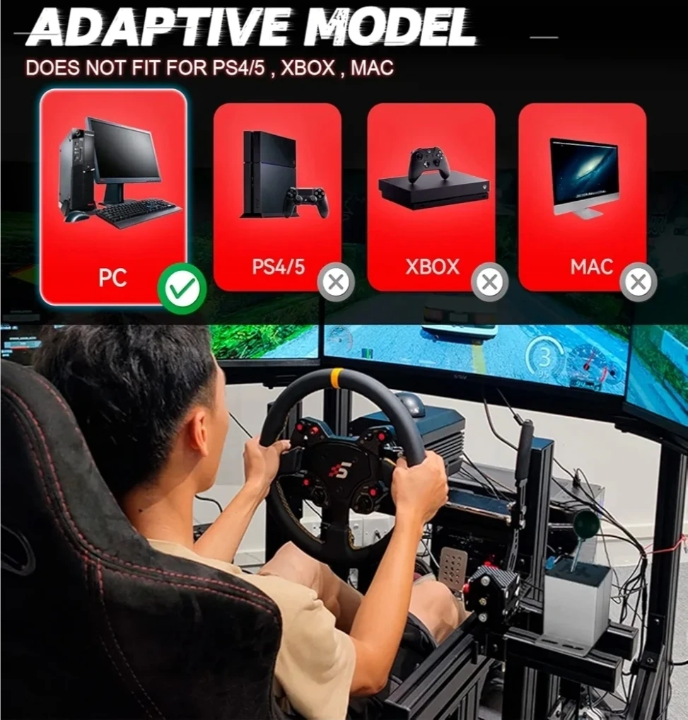 Works with Logitech G25, G27, G29, G920, G923, Thrustmaster T300, T500, and more