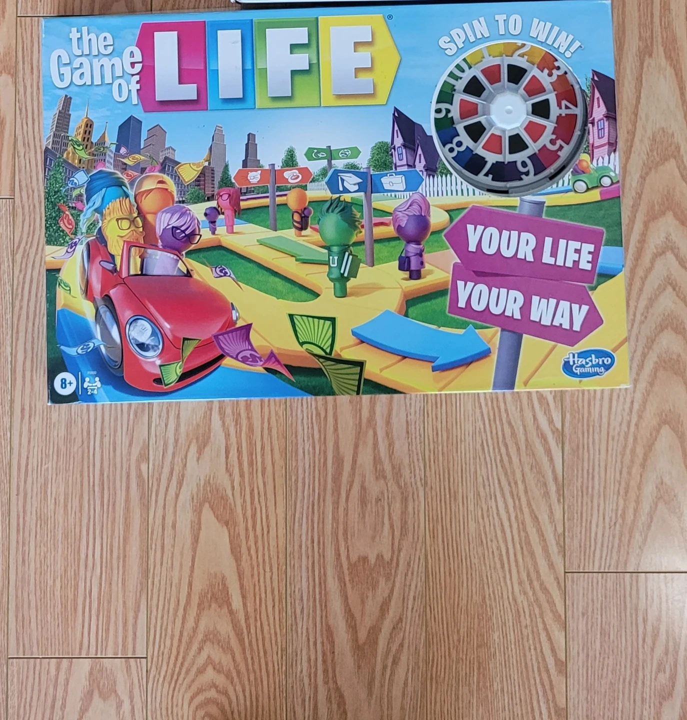 This is The Game of Life board game. It's designed for 2-4 players and recommended for ages 8 and up. Spin to win and choose your own path! All pieces includes