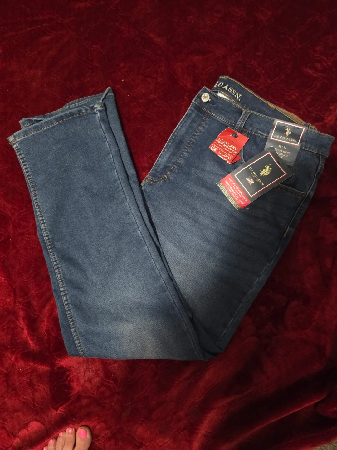 Brand new U.S. Polo Assn. men's jeans in a straight fit. These jeans feature a 38/32 waist and inseam. They are made with luxury performance denim.