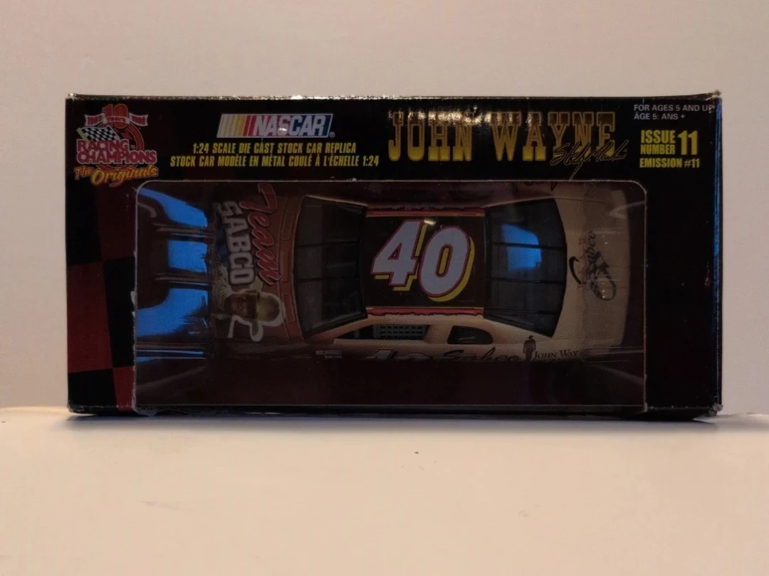 This is a 1:24 scale diecast stock car replica featuring John Wayne. It's part of the Racing Champions "The Originals" collection. The car is an issue #11 emission.