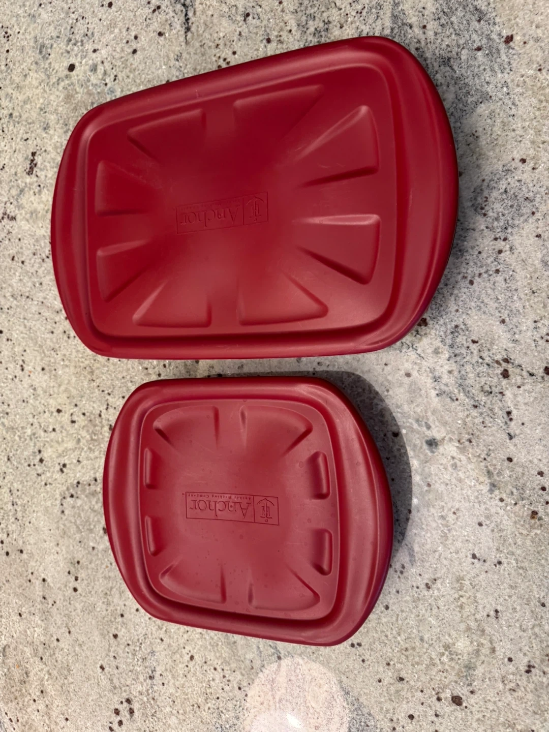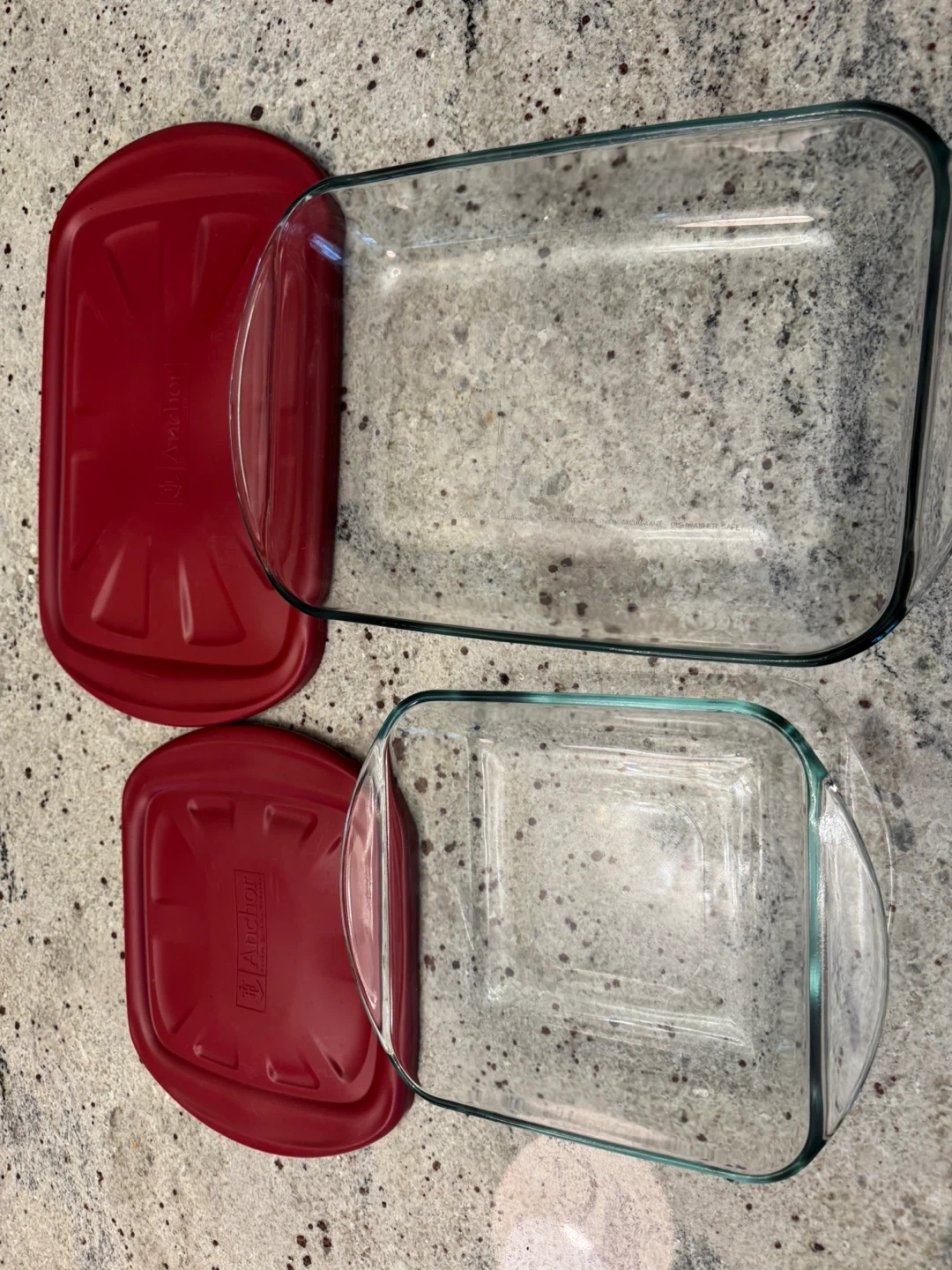 I'm offering a Anchor Hocking Glass Bake 'n' Keep Set with Plastic Lids, 4-pc in used condition. This set includes two glass baking dishes with red plastic lids, perfect for baking and storing your culinary creations.