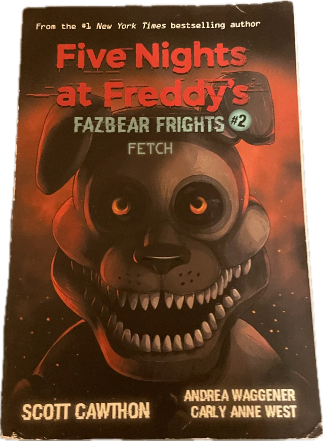 Selling Five Nights at Freddy's: Fazbear Frights #2, titled Fetch. It's written by Scott Cawthon, Andrea Waggener, and Carly Anne West. Slightly worn down