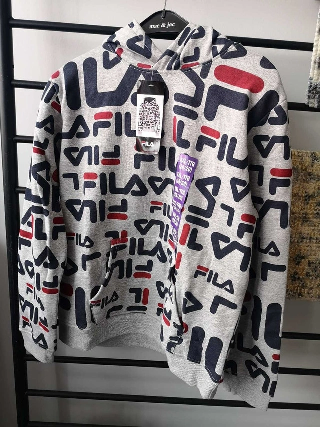 This is a new Fila hoodie, size XXL (18/20) with a stylish all-over print. It's perfect for staying cozy and fashionable. If the ad is still up, then it's still available!