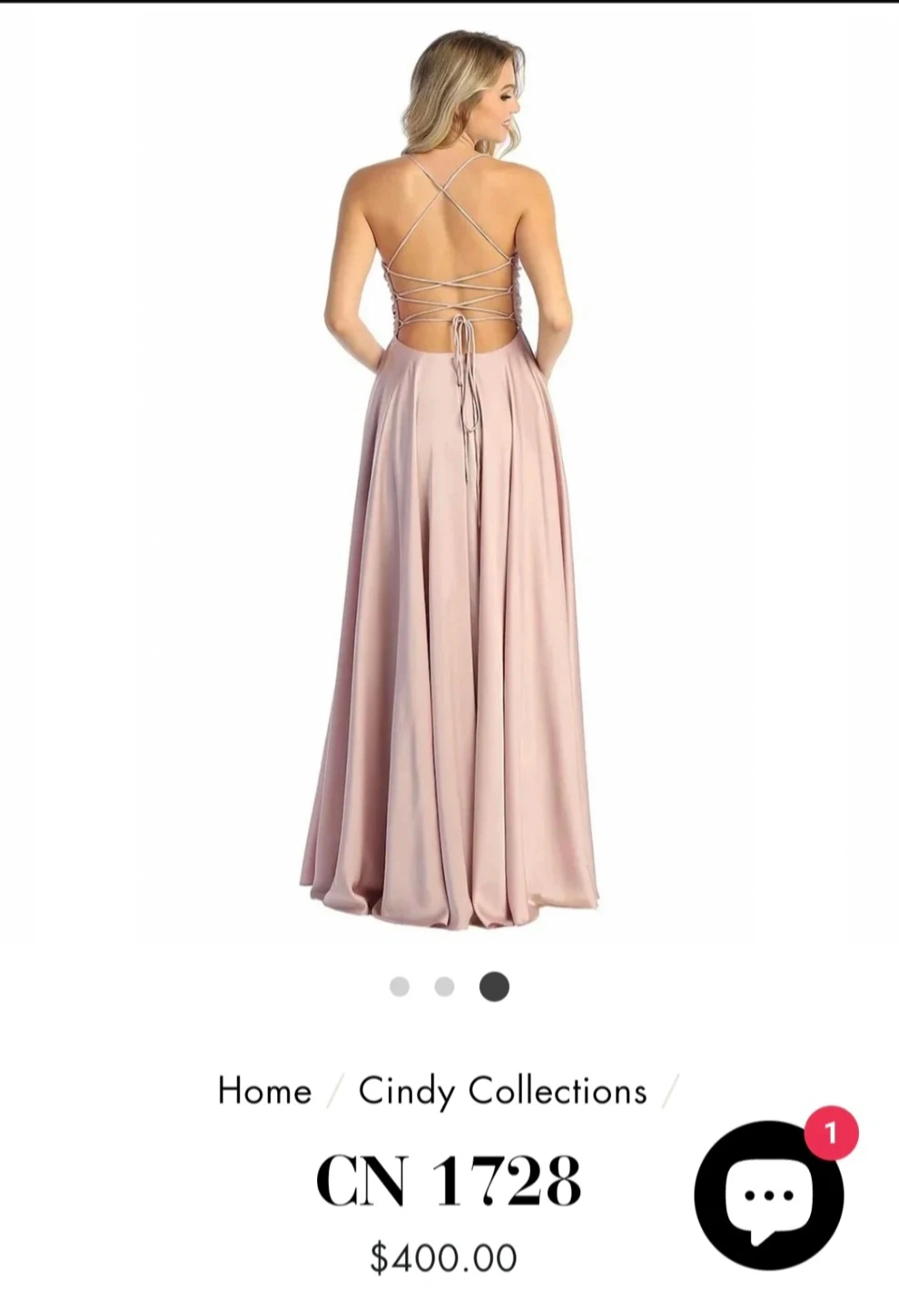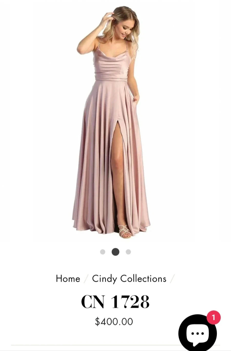 Beautiful satin prom dress with a cowl neck and thigh-high slit. It has a flattering silhouette and adjustable spaghetti straps. Pockets are included! Brand new dress bought it for an event I wasn't able to attend. It is identical to the picture size XL. NEVER WORN OR ALTERED. Stored in a garment bag and hung since purchase. Paid over $400 price is firm