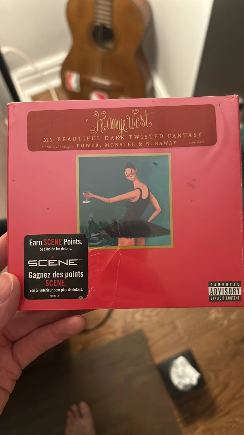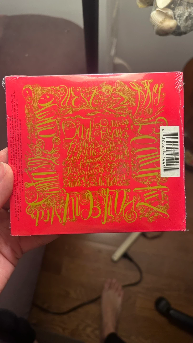 Kanye West's My Beautiful Dark Twisted Fantasy album on CD. It features the singles Power, Monster, and Runaway. This is a new, still sealed copy.