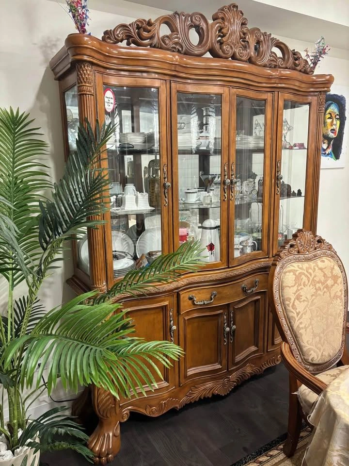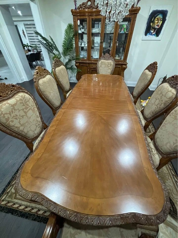 Included: 1 Large Dining Table + 8 Matching Chairs including Hutch.