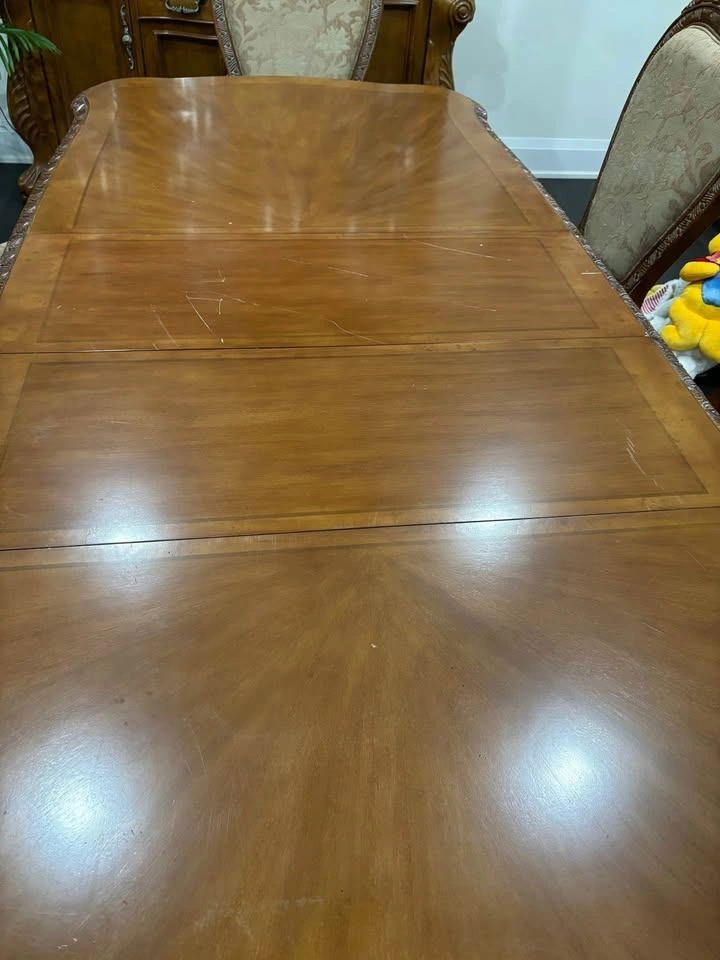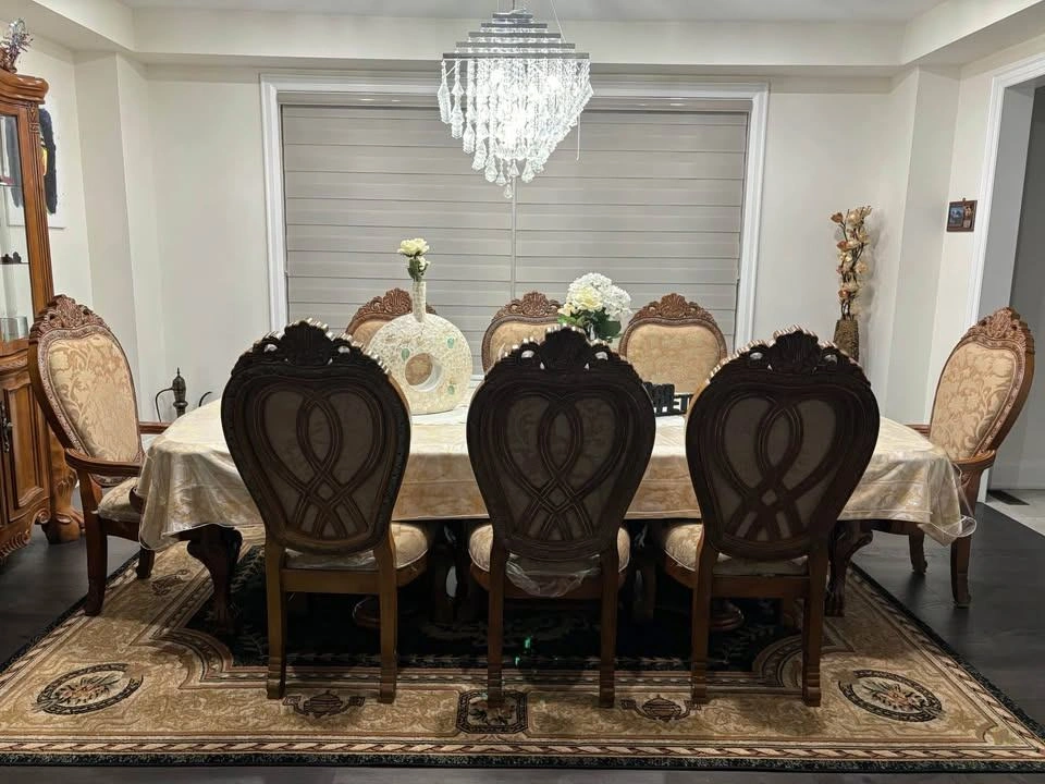Elevate your home with this stunning, grand dining ensemble. Perfect for hosting memorable holiday dinners or large family gatherings, this set combines timeless European-inspired craftsmanship with incredible durability.