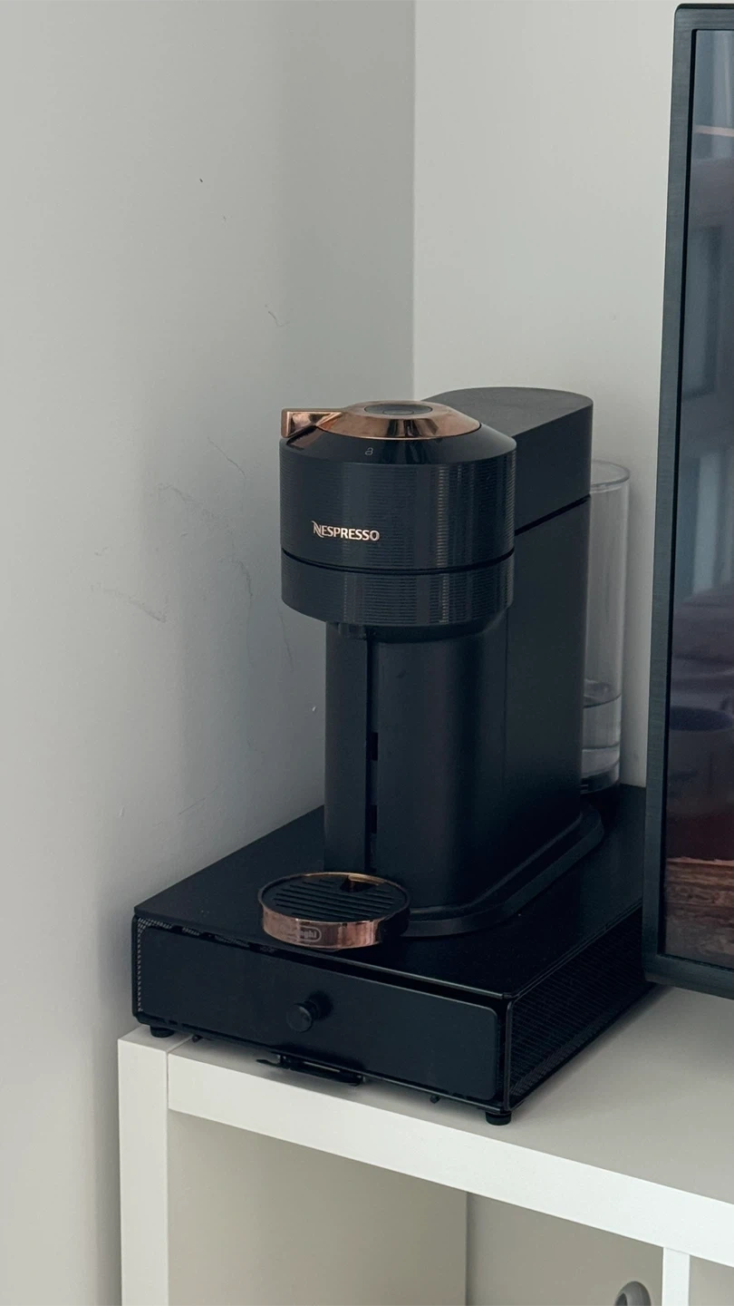 This Nespresso Vertuo Next coffee machine is in a sleek dark grey colour. It's perfect for making your morning coffee. Get yours today!