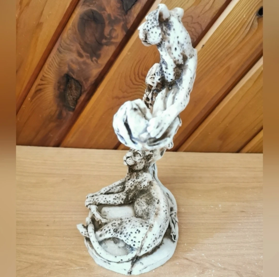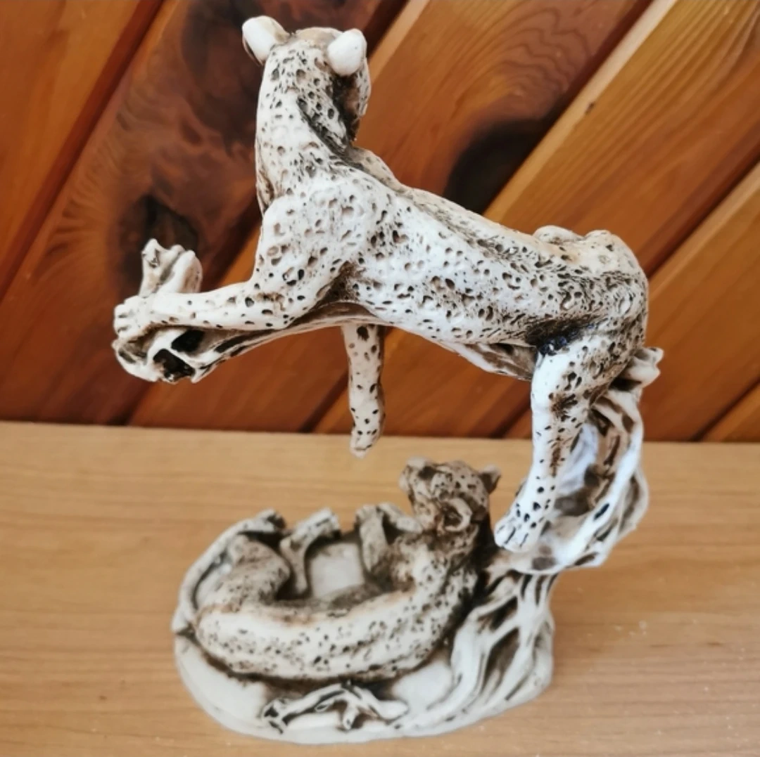 Vintage Cheetah Sculpture on Tree Branch