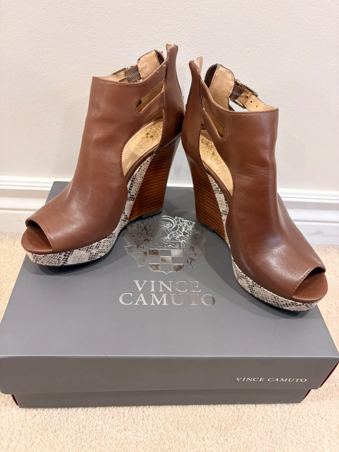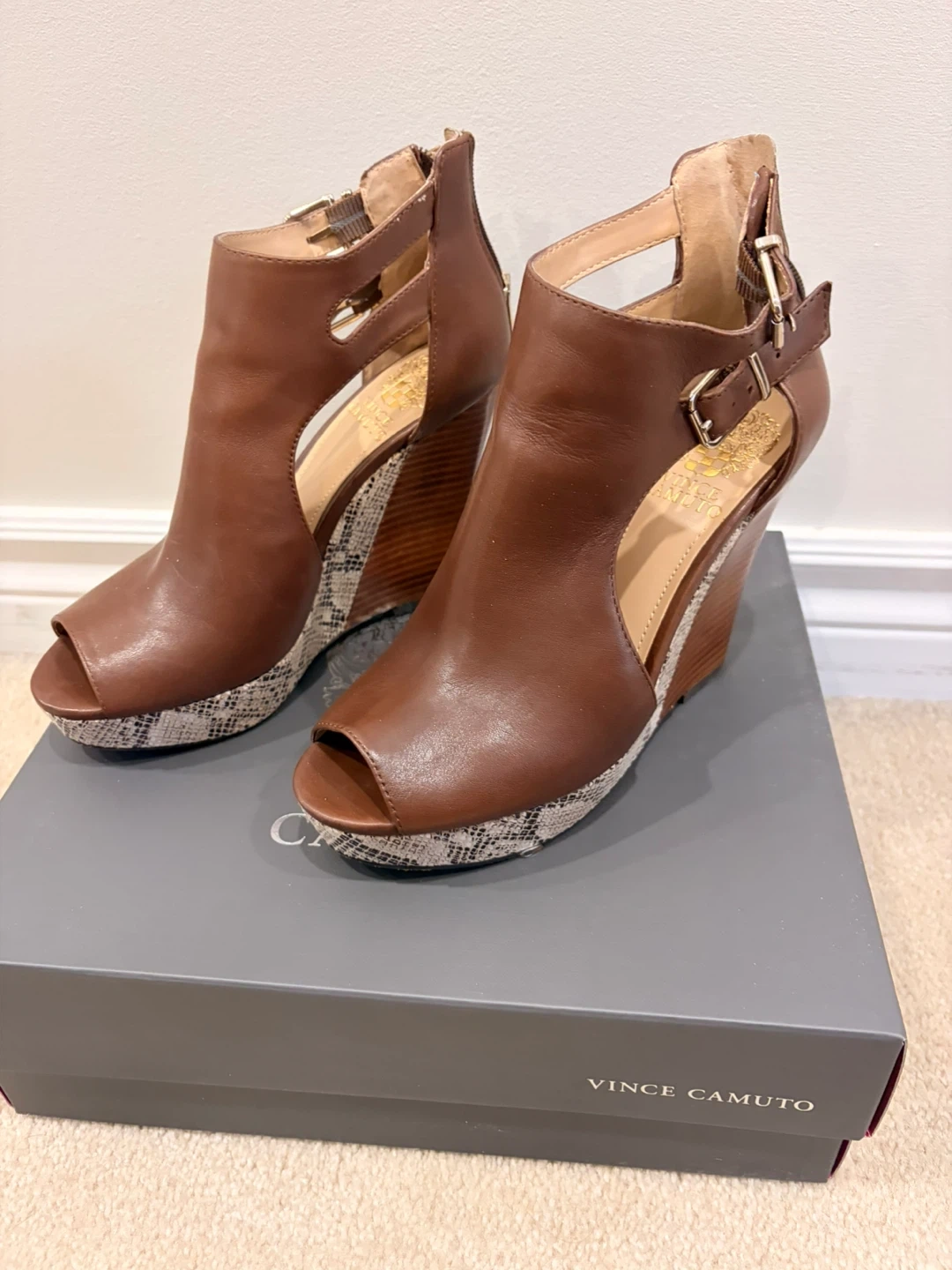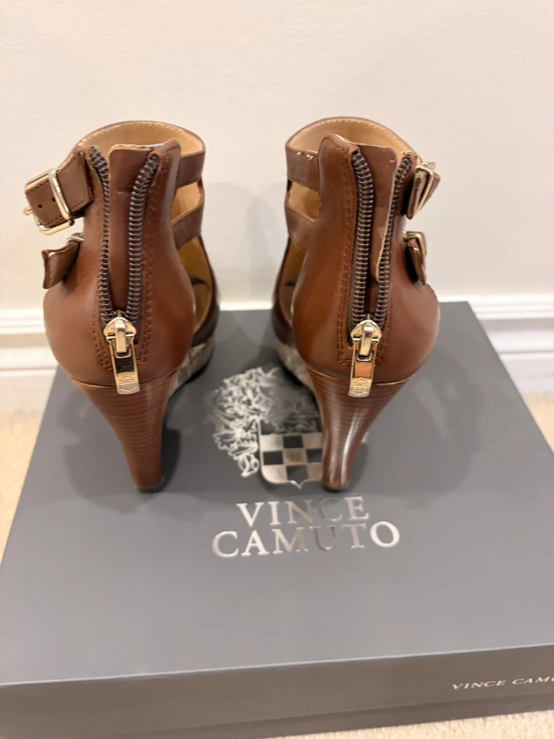Women’s Vince Camuto Whitnee dark walnut wedge sandles- size 6.5