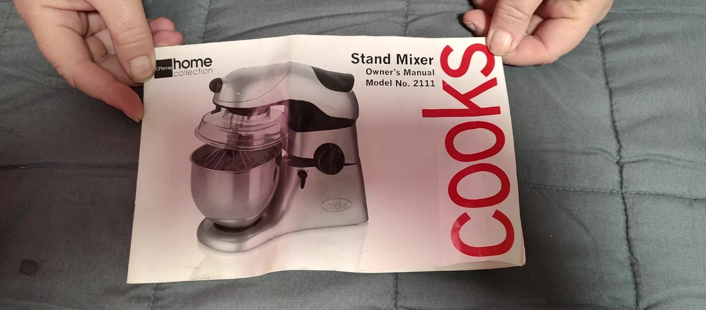 Selling a Cooks Stand Mixer, model number 2111. It's in good condition and comes with the accessories shown in the pictures. The owner's manual is also included!
