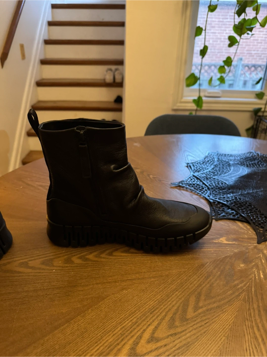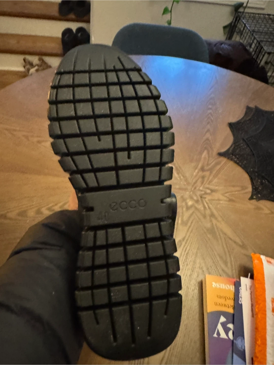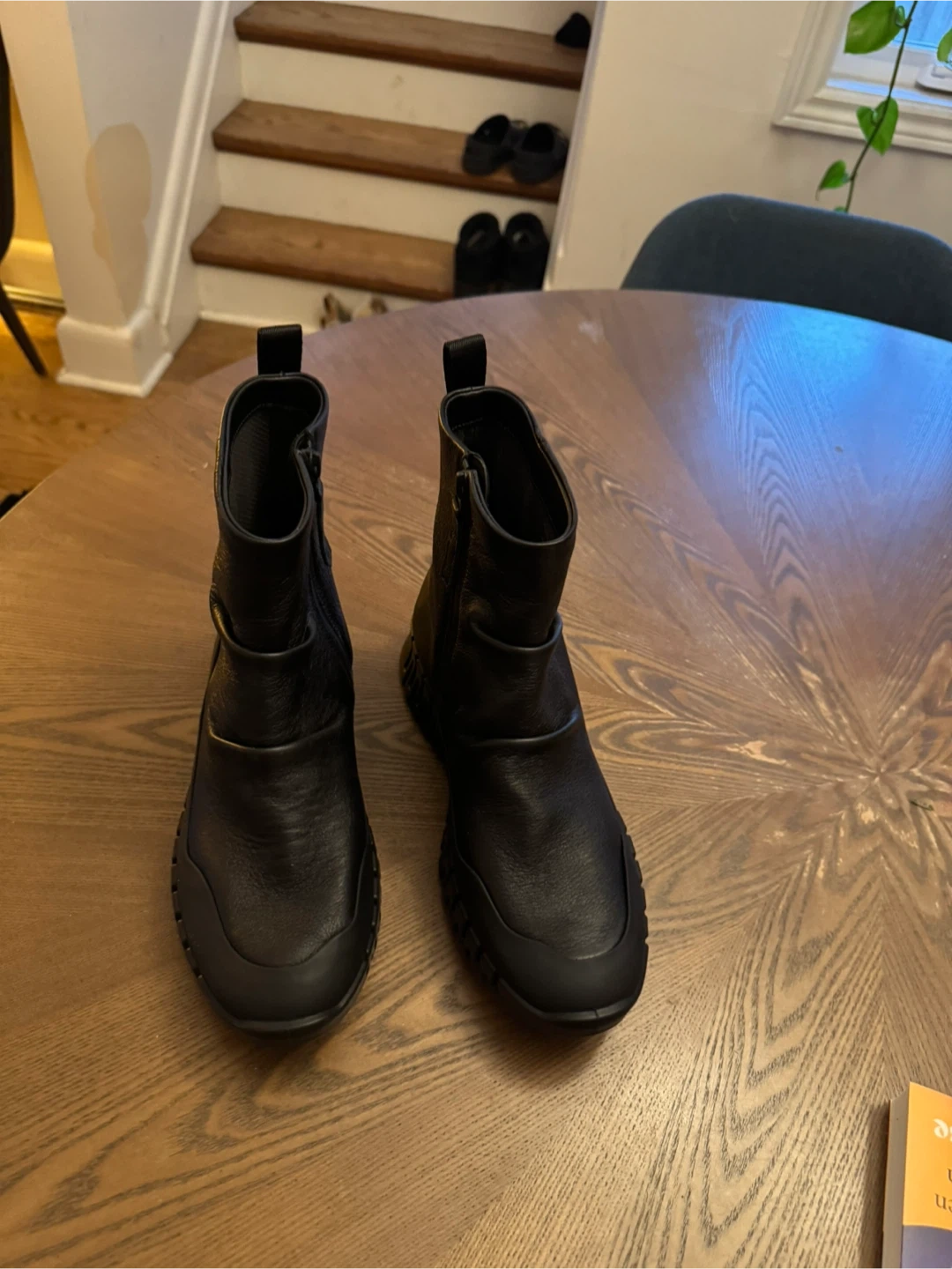 10Selling a pair of Ecco black leather boots in great condition! The size is 40which is equivalent to a size 9. These are comfortable and stylish, perfect for everyday wear. These are brand new never worn.
