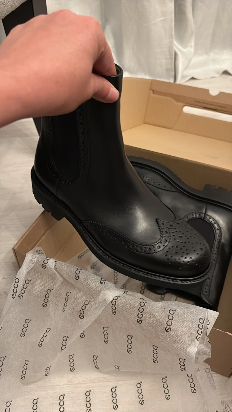 49Selling a pair of brand new ECCO Chelsea boots in black leather! These stylish boots come in their original box and are ready for a new home. Perfect for adding a touch of sophistication to any outfit