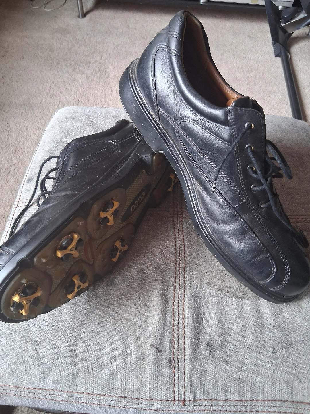 10Ecco black leather golf shoes in good condition. They are size 44 (US 10-10.5). Ready for the golf course!
