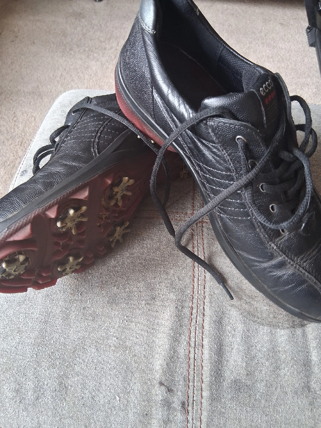 10Selling a pair of Ecco golf shoes in black leather. They're in good condition and ready for the green! The shoes are made with GORE-TEX material for extra protection against the elements. Perfect for anyone looking for a comfortable and stylish pair of golf shoes.