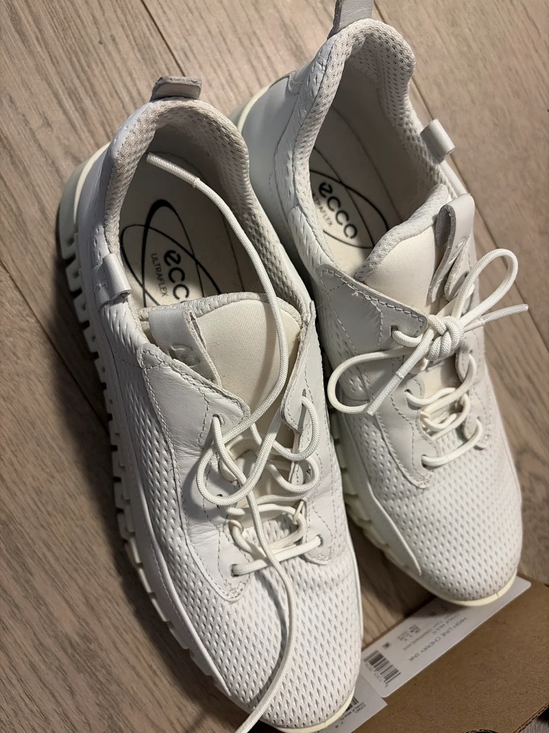 171Selling a pair of Ecco Ultra Flex sneakers in white. They are a size 40, which is equivalent to a US size 9-9.5