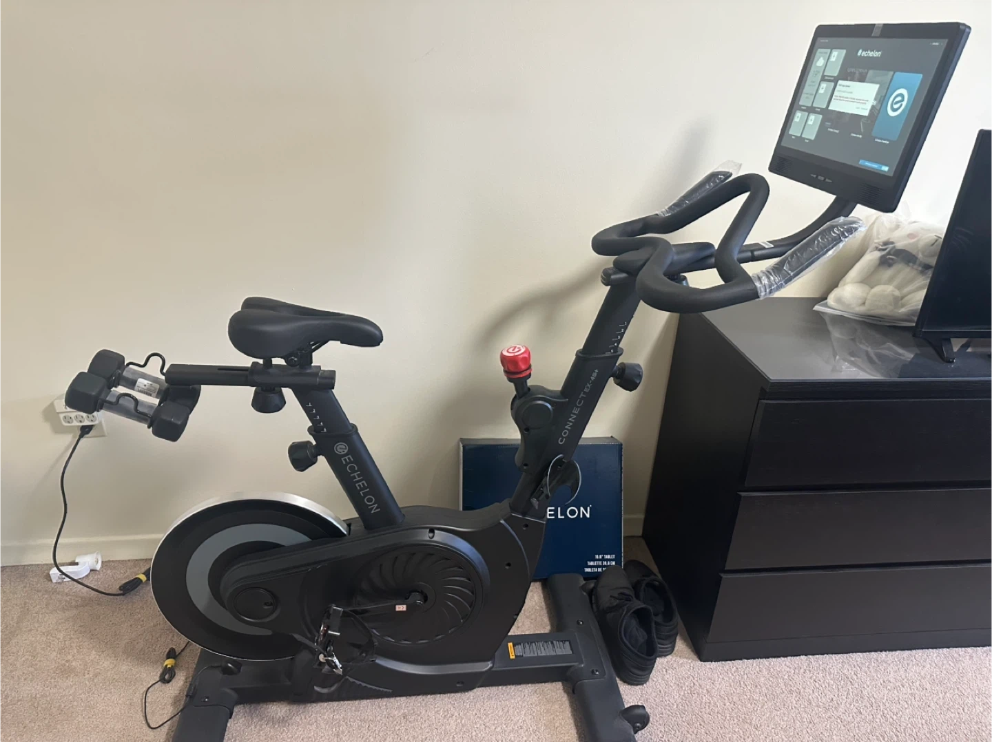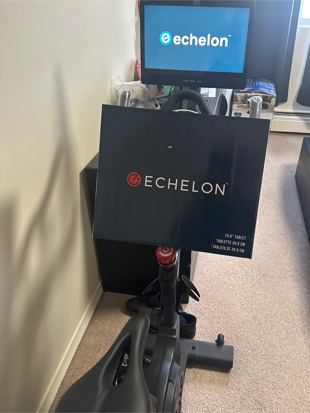 Selling an Echelon Connect EX-4S+ exercise bike. It's in great shape and ready for a new home! Perfect for getting your sweat on indoors, especially with the colder months coming up. Get your fitness on! 39.6 cm (15.6 in.) Full HD touchscreen that flips 180 degrees for floor exercises Lightweight structural triangular tubing Competition style seat New precision control motor 32 levels of indexing resistance adjustment with spring- loaded adjustment knob Handheld weight rack on seat slide SPD compatible adjustable toe cage pedals Handbrake for quick stops and safe speed reduction 2 water bottle holders in front Fully padded comfort grip bullhorn handlebars Stable and portable footprint with wheels front wheels for mobility Maximum user weight: 136 kg (300 lb.) Includes: Bike 39.6 cm (15.6 in.) HD Touch-screen Monitor Power Cord Instruction Manual Tools Specifications: Dimensions (L × W × H/D): 138 cm × 50.5 cm × 124 cm (54.3 in. × 19.9 in. × 48.8 in.) Weight: 47 kg (105 lb.)