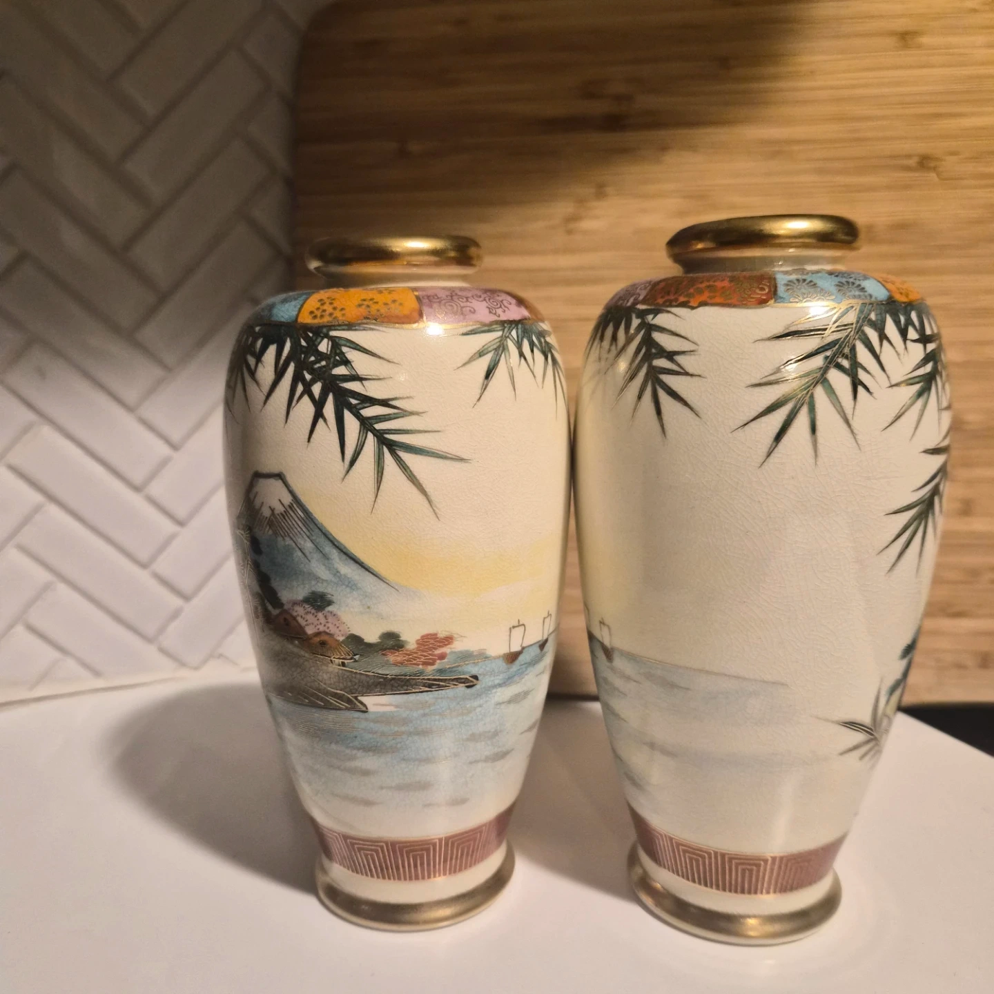 VIntage Japanese Satsuma vase, likely from the mid-20th century, featuring a crackle glaze and an export mark.