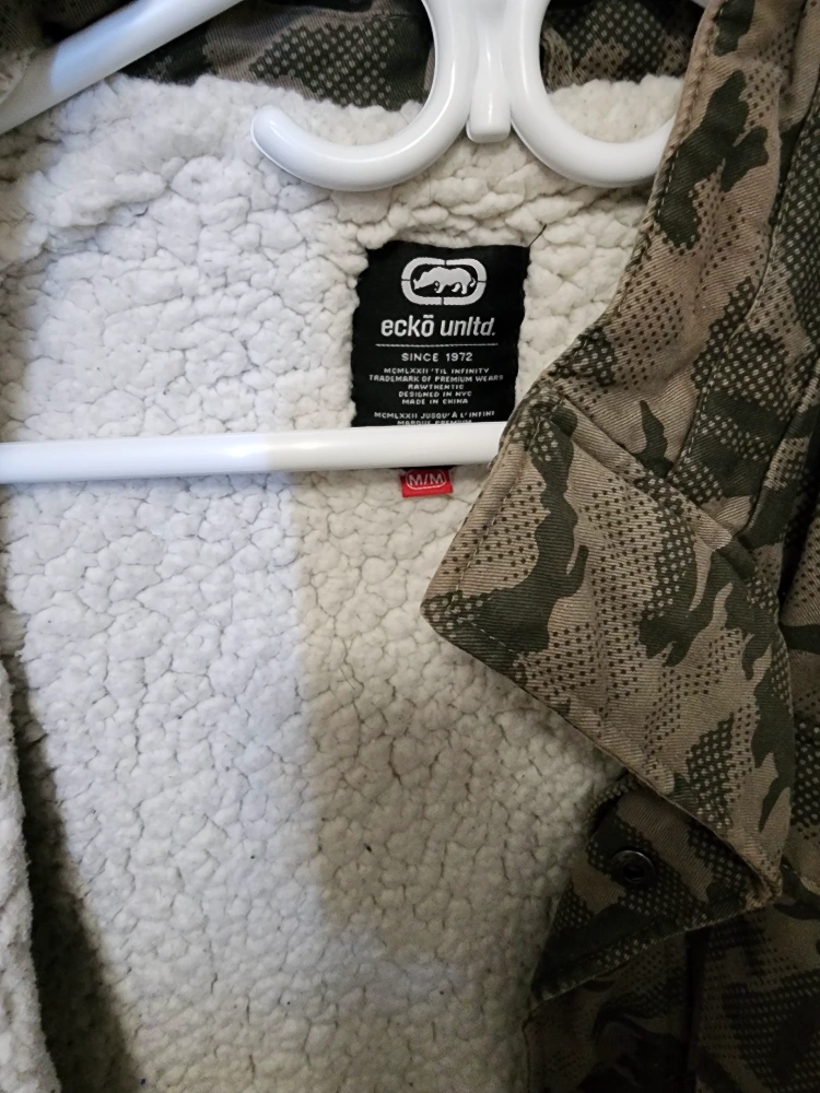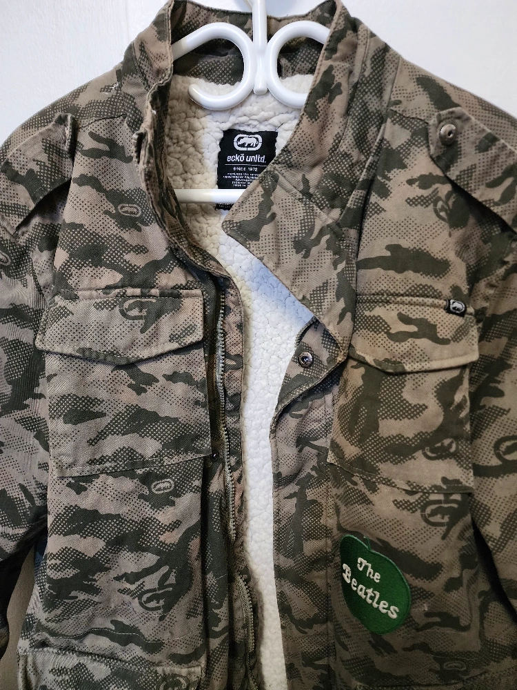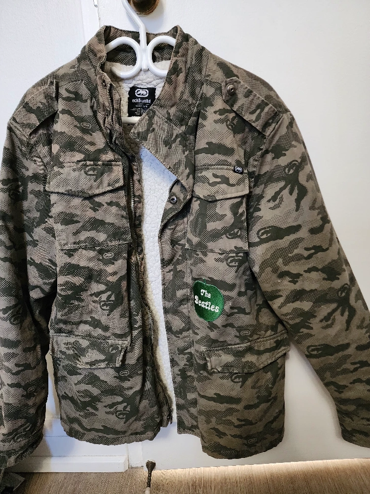 489Selling a gently used Ecko Unltd jacket in size medium! The jacket features a cool camouflage pattern and a cozy sherpa lining. It's perfect for those cooler days. The Beatles patch is also included!
