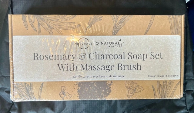 Treat yourself to a spa day at home with this new O Naturals Rosemary & Charcoal Soap Set with Massage Brush. This set is designed to invigorate your skin and senses. It comes brand new, sealed in its original packaging. Includes: Rosemary & Peppermint Soap Bar, Charcoal Soap Bar, and Massage Brush. Vegan friendly and cruelty-free. If the ad is up, it's available!