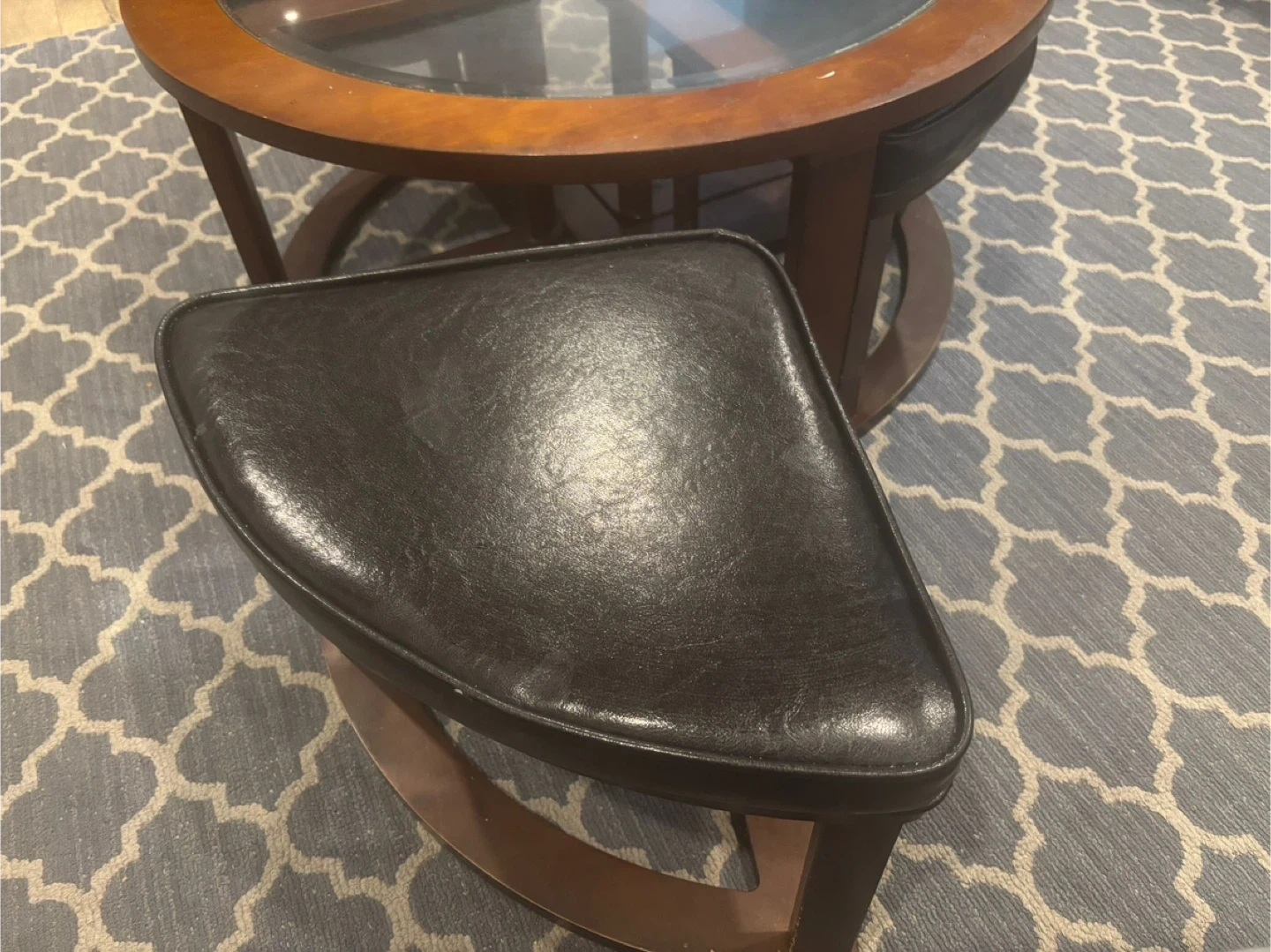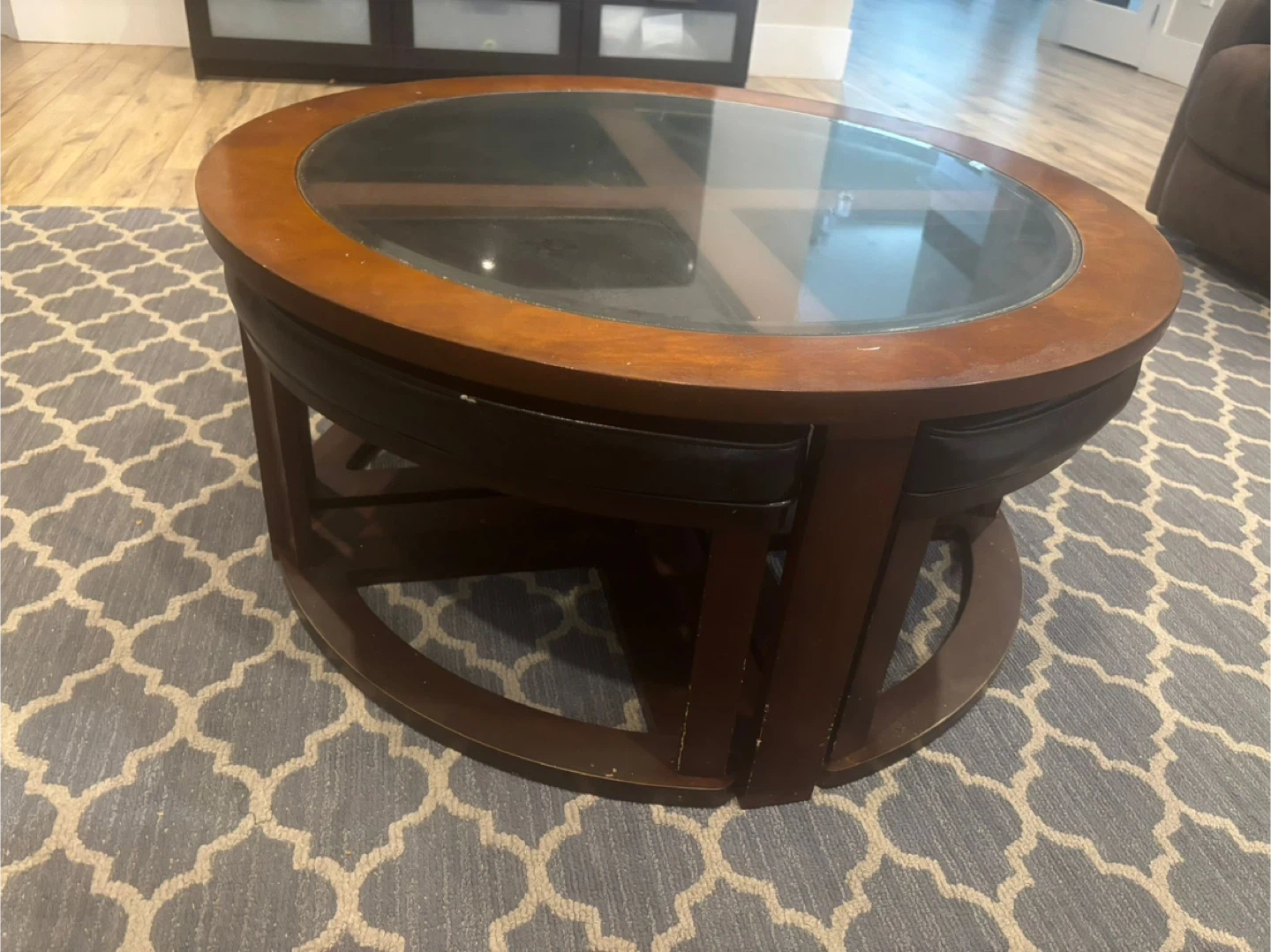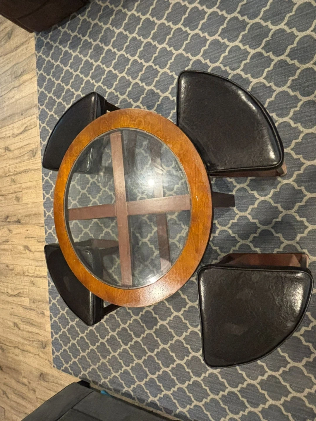 Round Coffee Table with 4 Ottomans