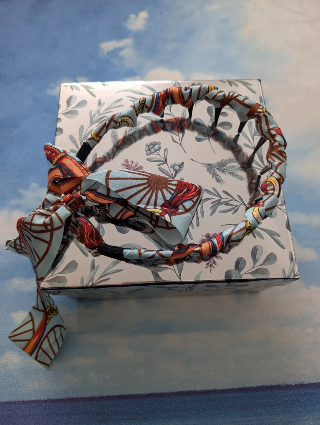 Stylish Blue Patterned Headband. Elevate your look with this chic blue patterned headband. Perfect for adding a touch of elegance to any outfit.