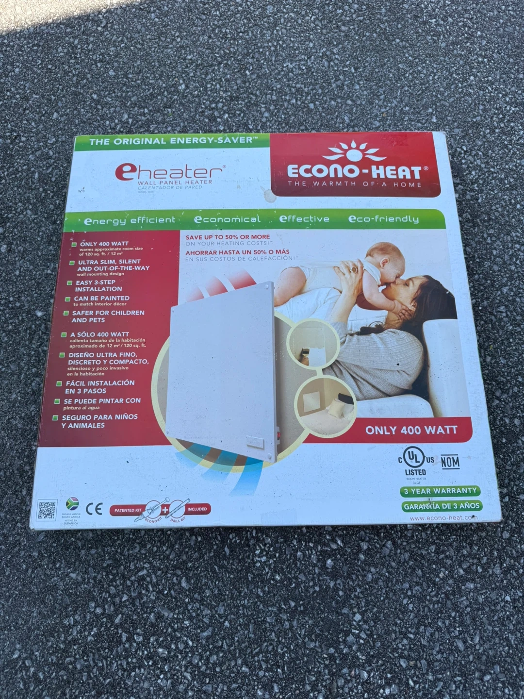 Looking to heat a small space efficiently? This Econo-Heat wall panel heater is only 400 watts and designed to be energy-efficient, economical, effective, and eco-friendly. It's safe for children and pets, and can even be painted to match your decor! It’s designed to be ultra-thin, silent, and out-of-the-way.