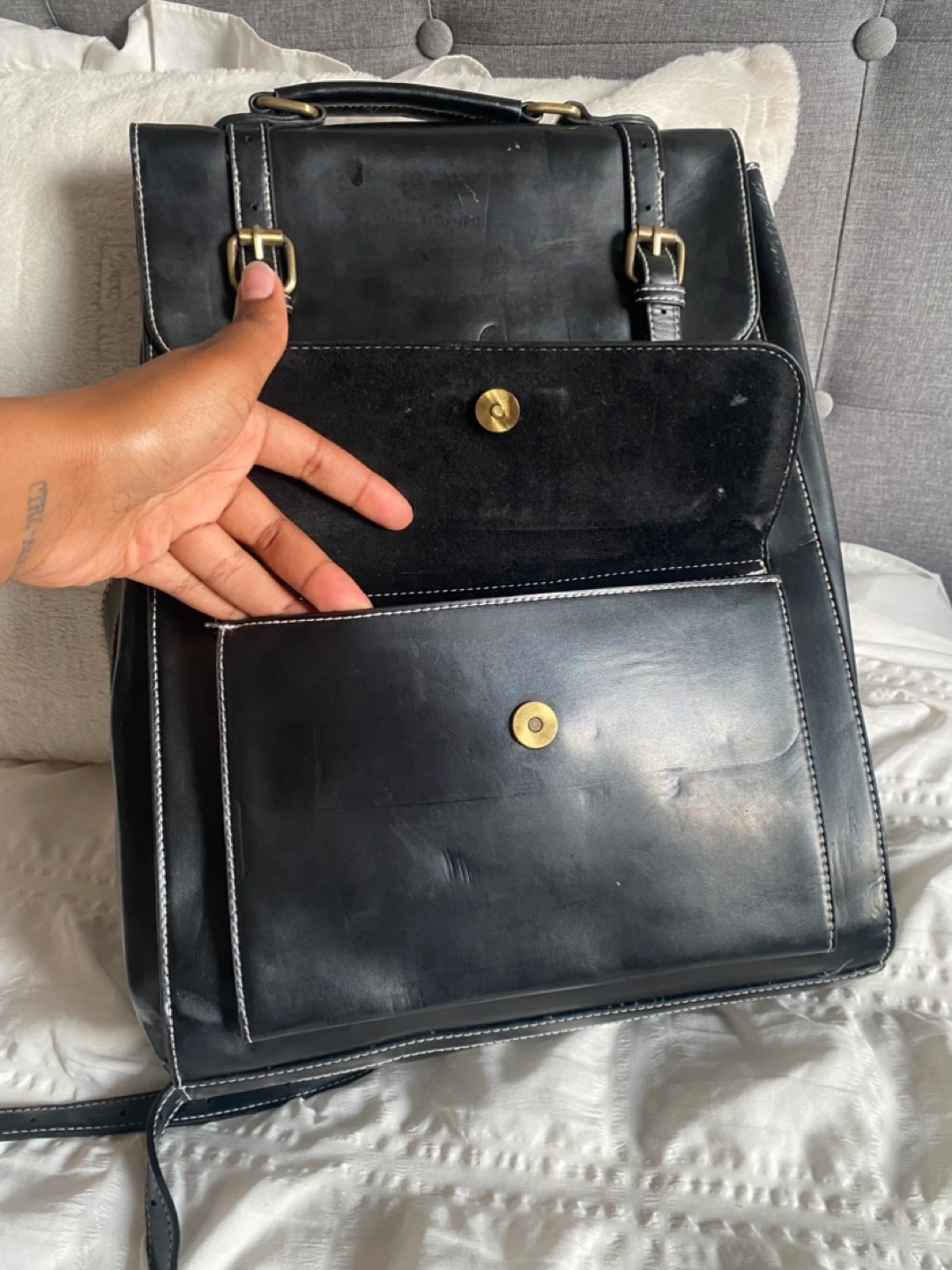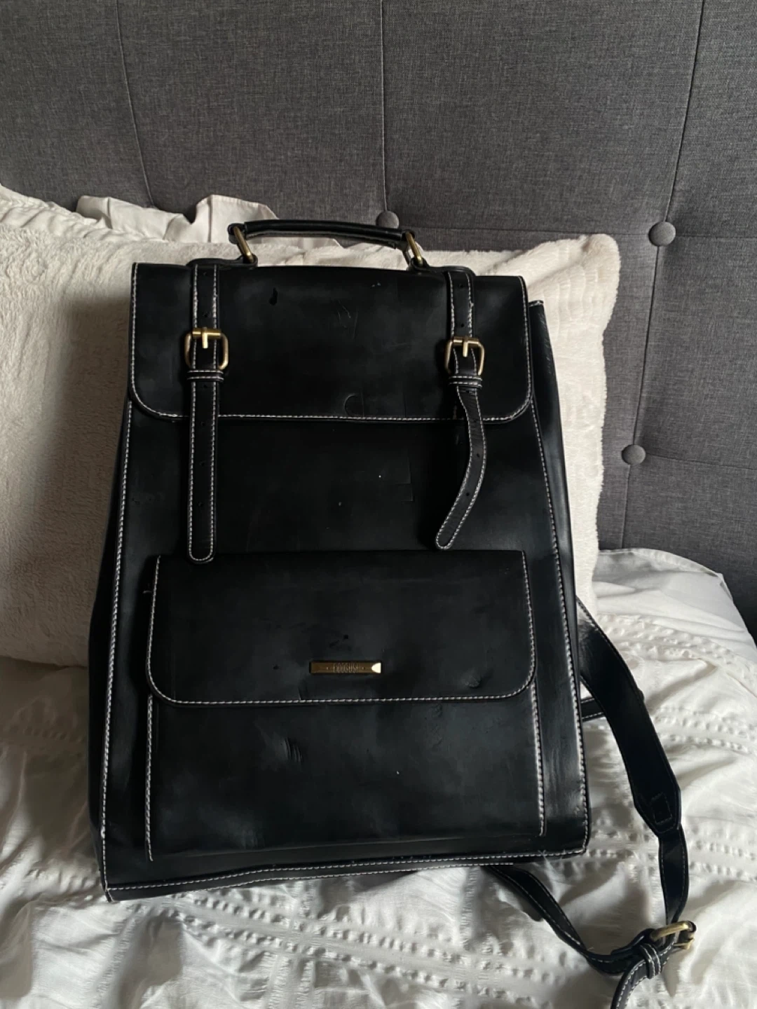 Selling a black ECOSUSI laptop backpack that fits a 15.6-inch laptop. It features a laptop compartment, a large main compartment for A4 folders, two pen pockets, and an internal zippered pocket for valuables. It's great for keeping your belongings organized and secure