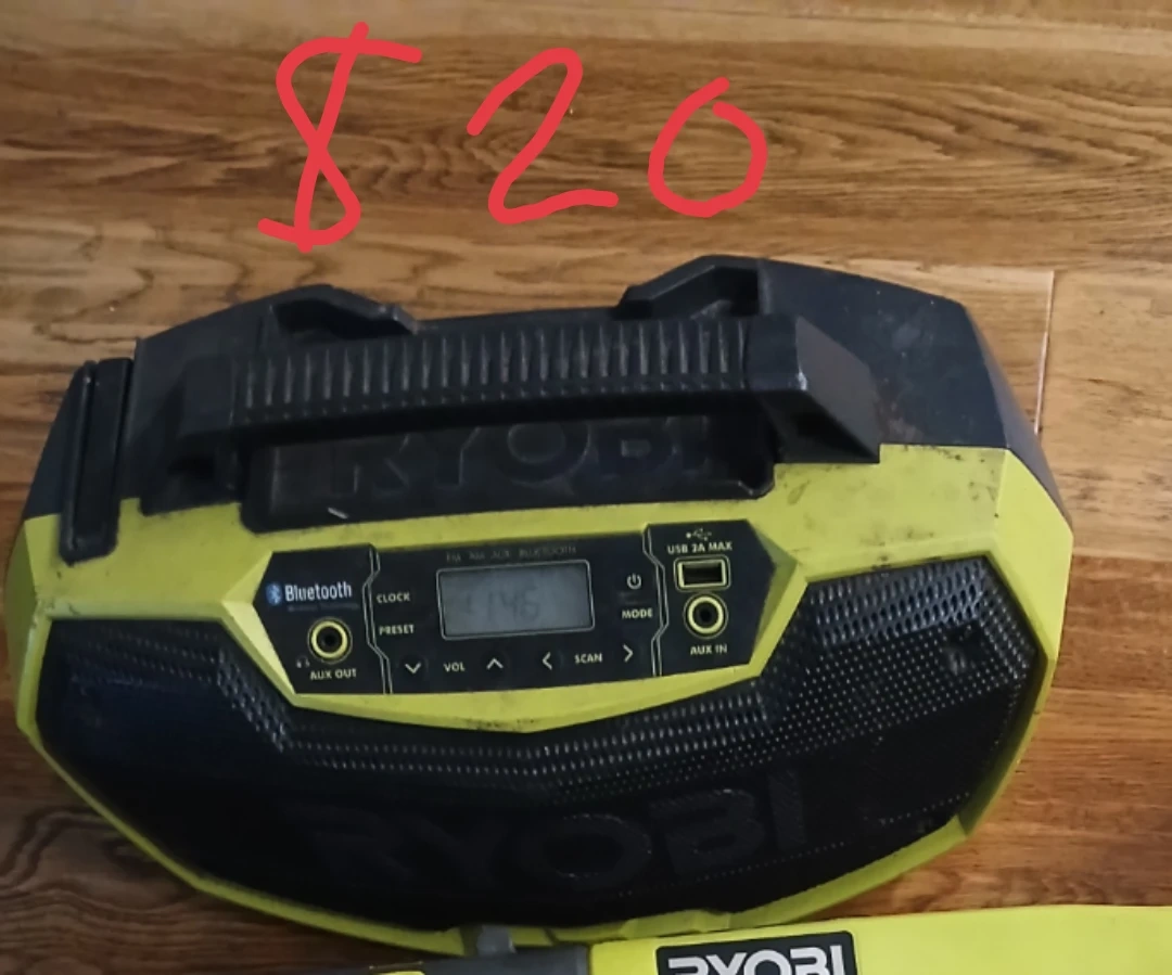 Ryobi portable jobsite radio with Bluetooth connectivity. It has USB charging and auxiliary inputs. Great for the workshop or jobsite!
