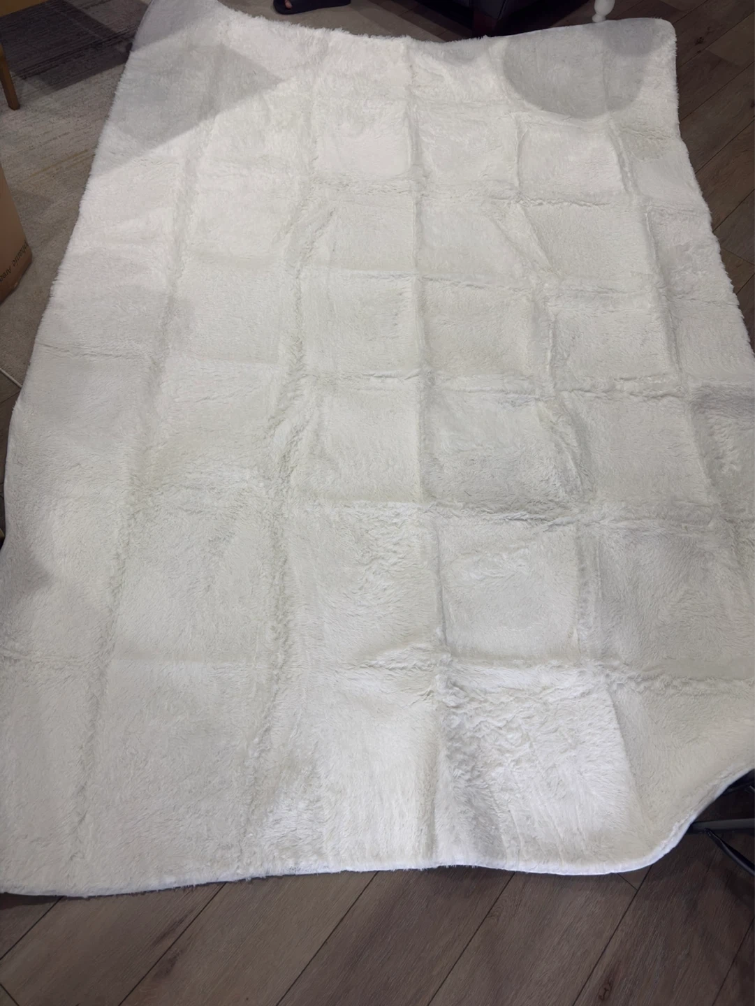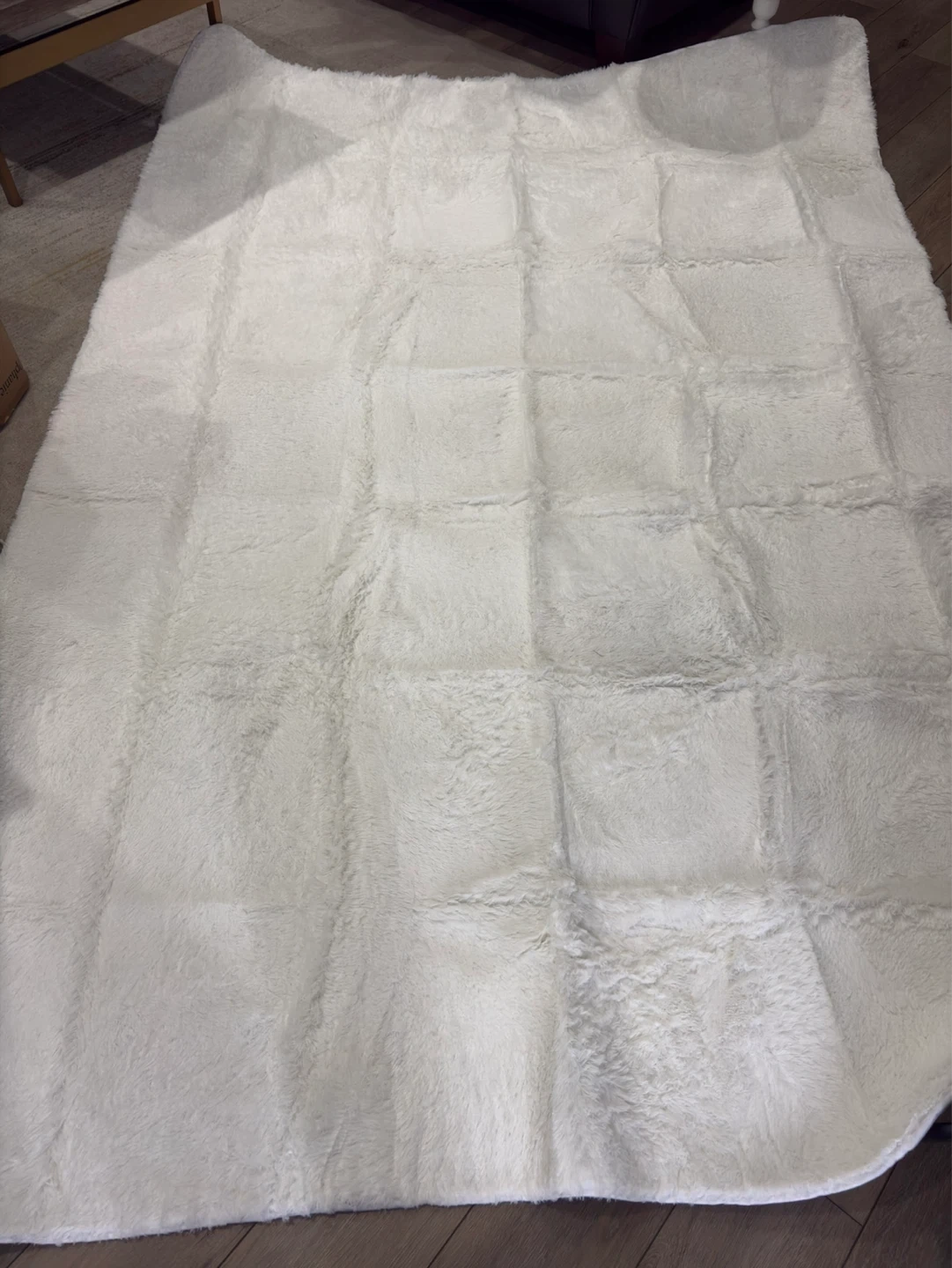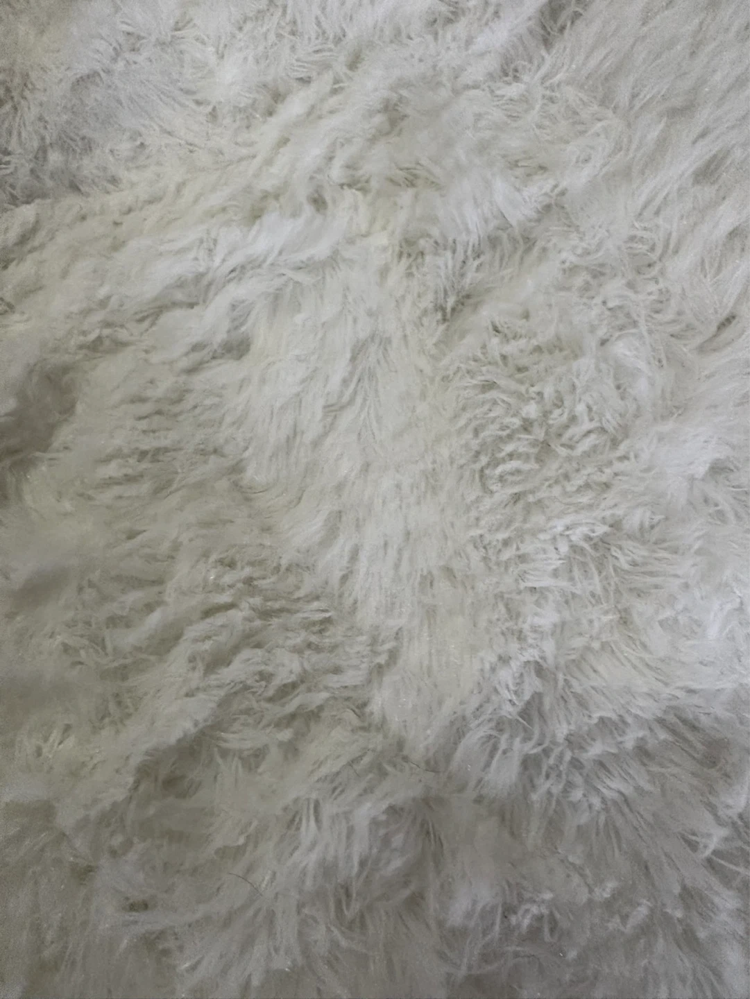 Soft white shag rug. It's a 6' x 9' rectangular size. Perfect for adding warmth to any room!