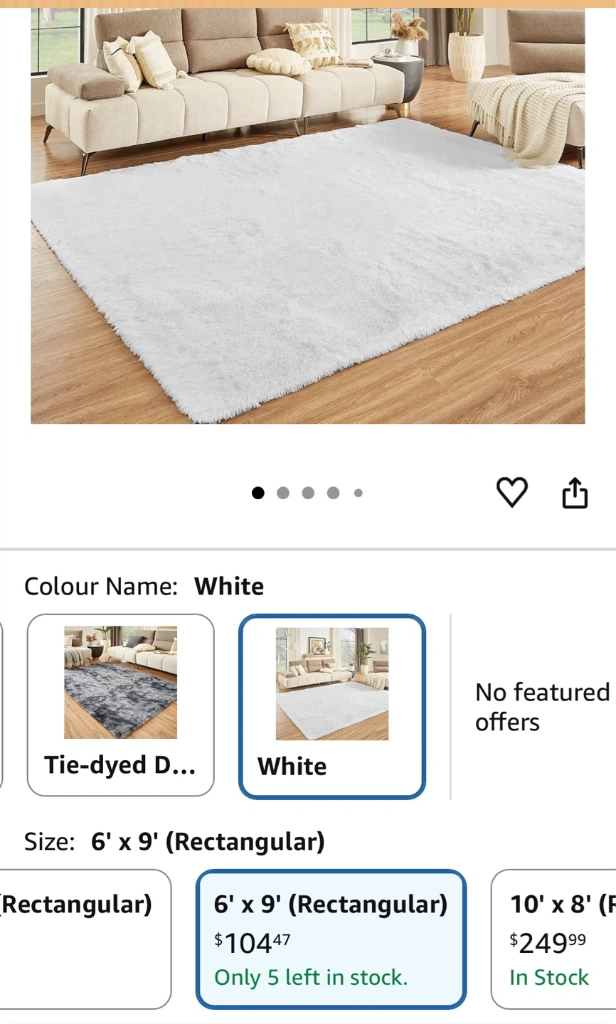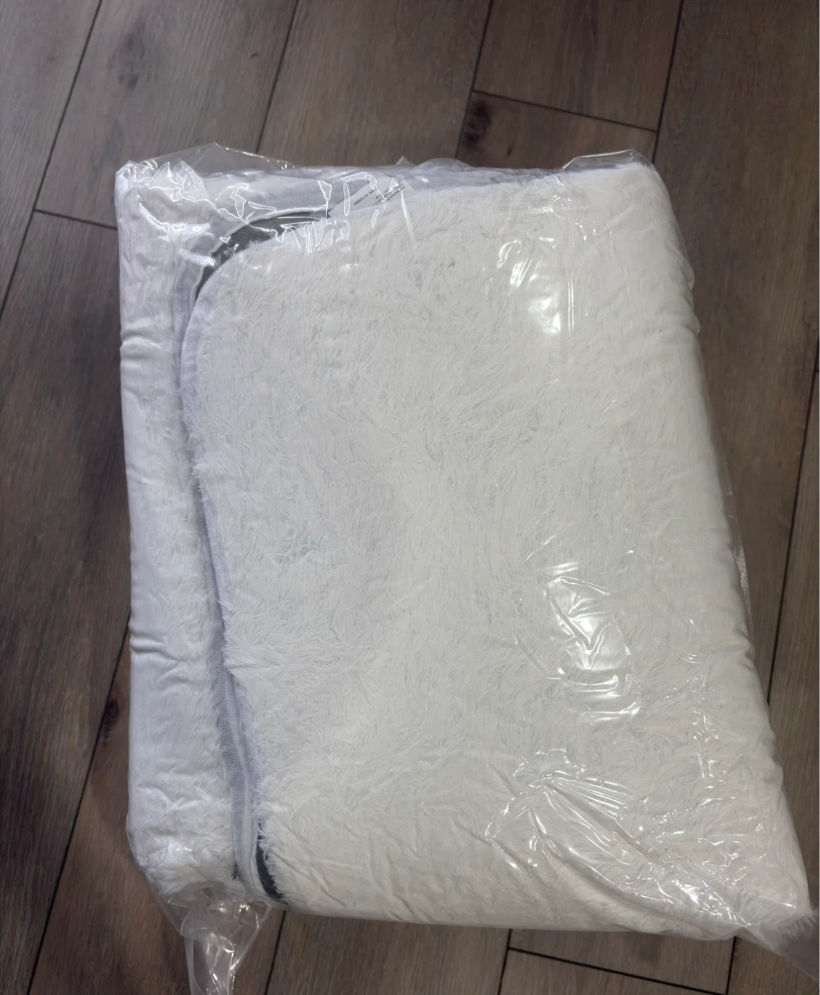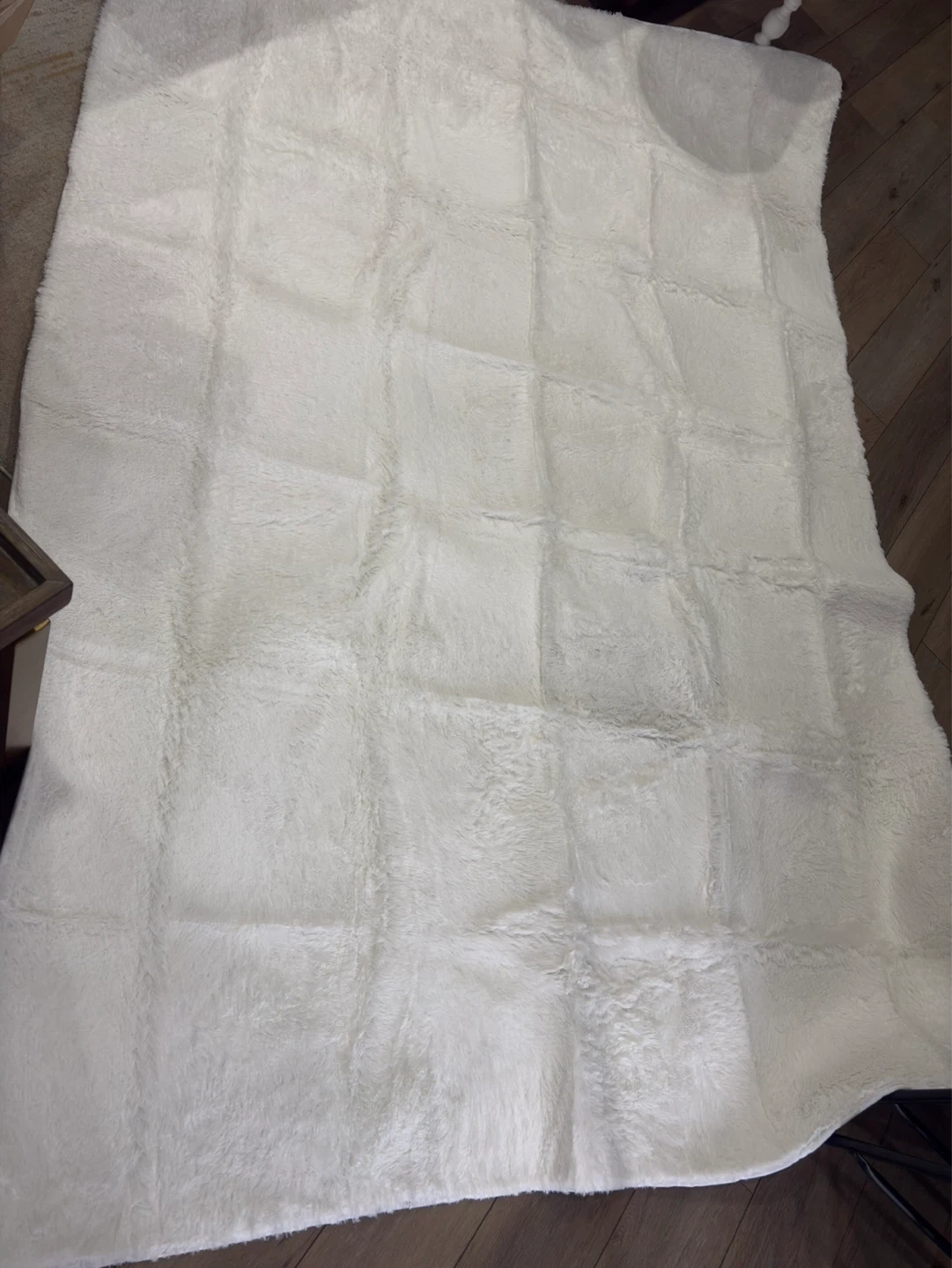 Soft white shag rug. It's a 6' x 9' rectangular size. Perfect for adding warmth to any room!
