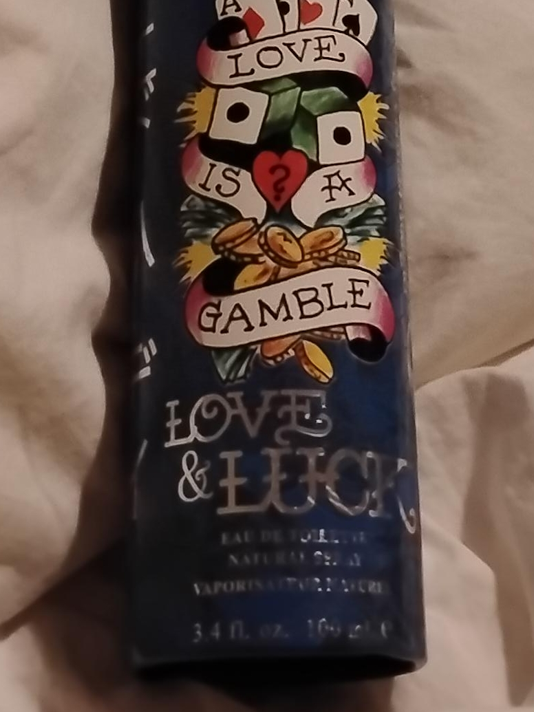 10Selling a bottle of Ed Hardy Love & Luck Eau de Toilette. It's a 3.4 fl oz (100 g) bottle. The design features a cool tattoo-inspired look!