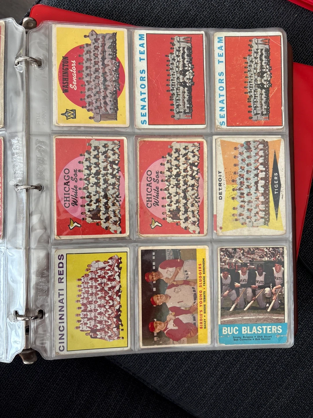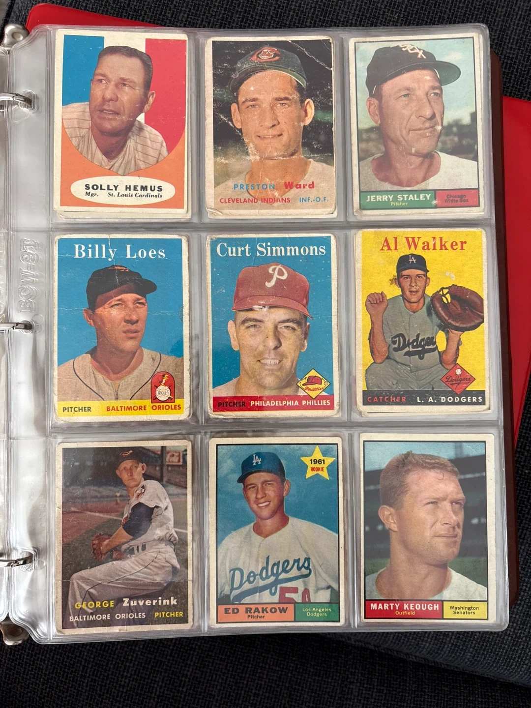 A collection of 1950/60 vintage baseball cards. Includes cards from the Senators, Chicago White Sox, Detroit Tigers, Cincinnati Reds, and more. Some cards depict famous players like Solly Hemus, Preston Ward, and Jerry Staley. A great addition for any baseball memorabilia enthusiast!