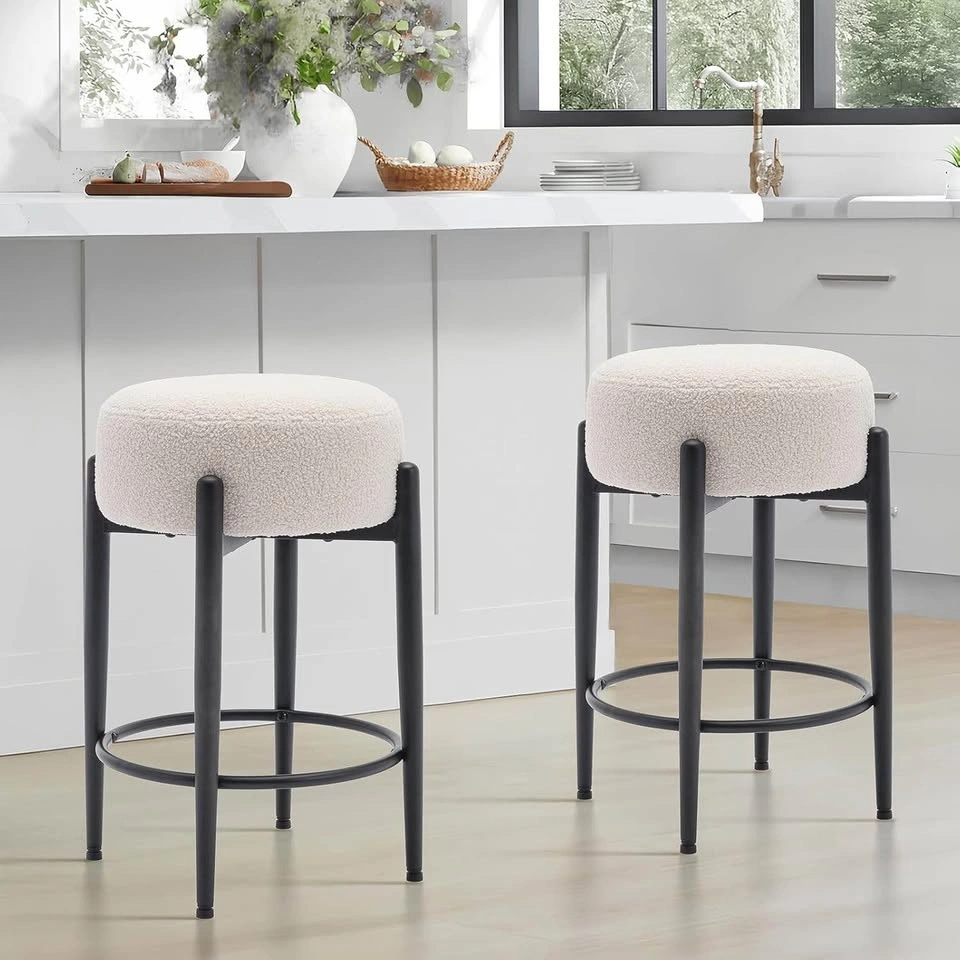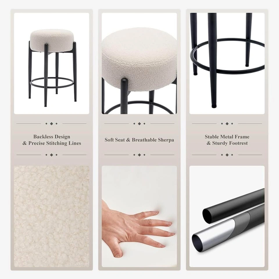 Set of 2 mid century modern sherpa stools, brand new in box. Price: $140 for the set.