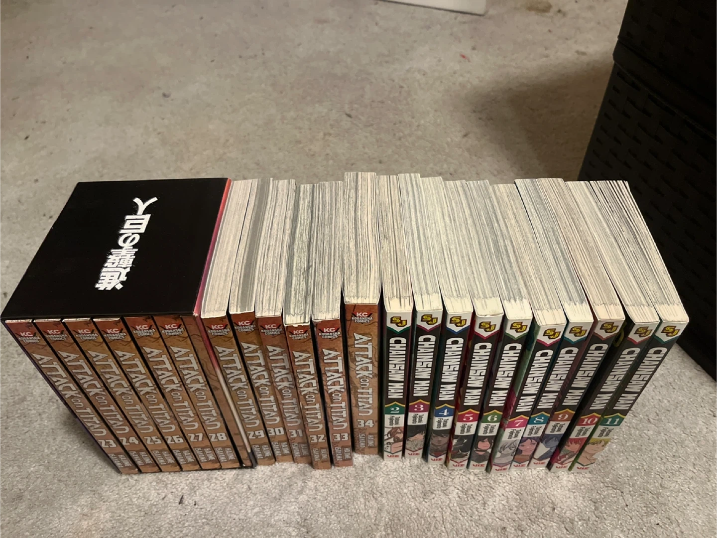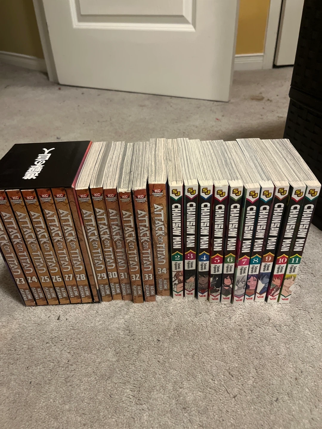 Collection of Attack on Titan manga volumes 23-34 and Chainsaw Man manga volumes 2- 11. Both series in wonderful new condition. Looking to sell each as a set.