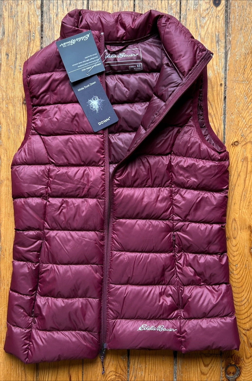 Keep cozy with this Eddie Bauer CirrusLite down vest! It features premium down insulation and a StormRepel durable water repellent finish that sheds moisture. It also has secure zip pockets. Size is women's XS.