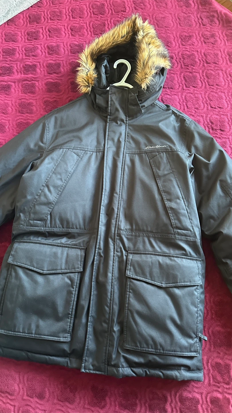 76Selling a cozy Eddie Bauer down parka in black. perfect for staying warm during those cold Canadian winters!