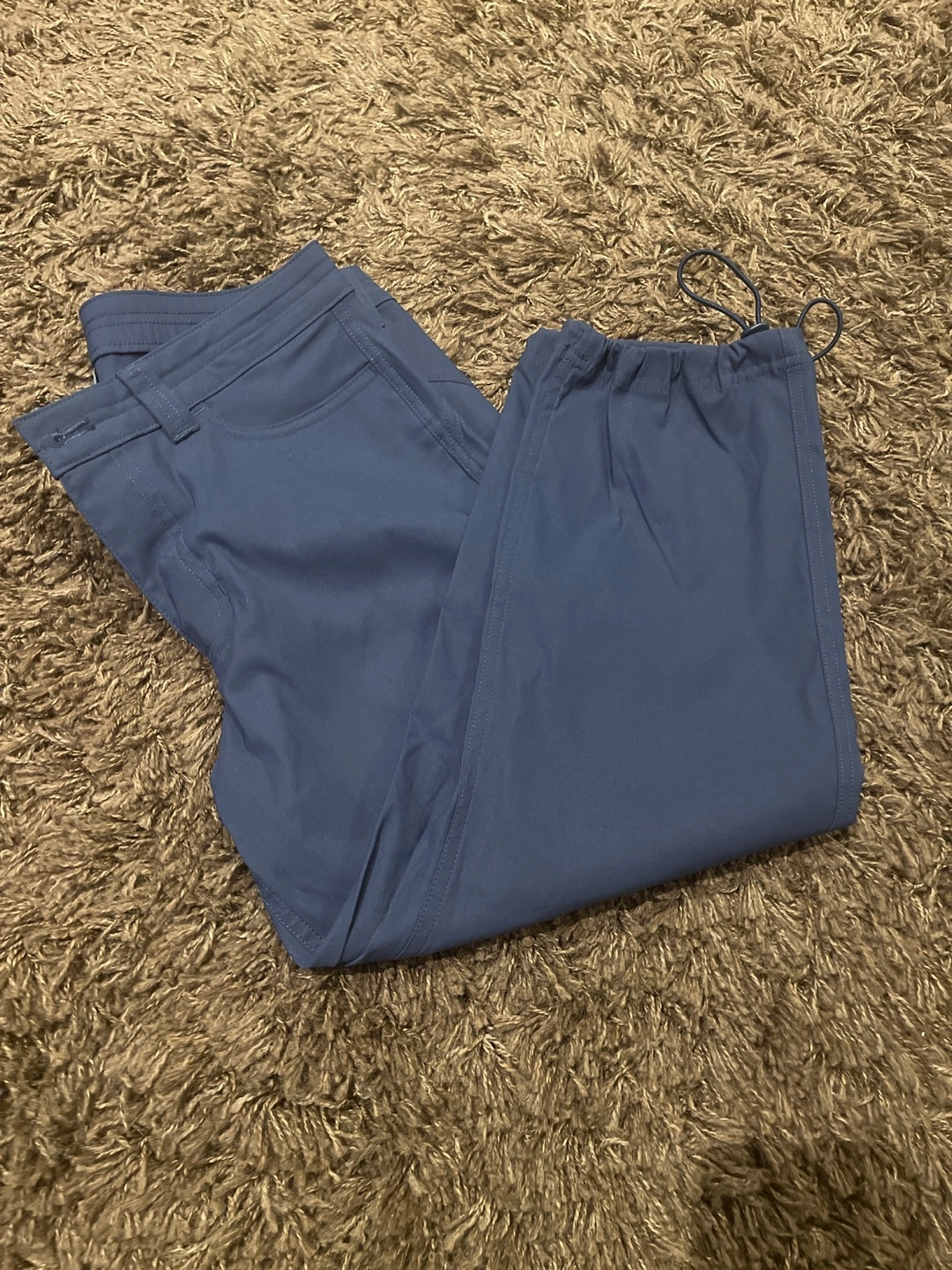 Brand new with no tag Women's cropped pants. Dark blue colour. Elasticated cuffs.its great for every day use.it has two front pockets and one zipper pocket on left leg.excellent condition.