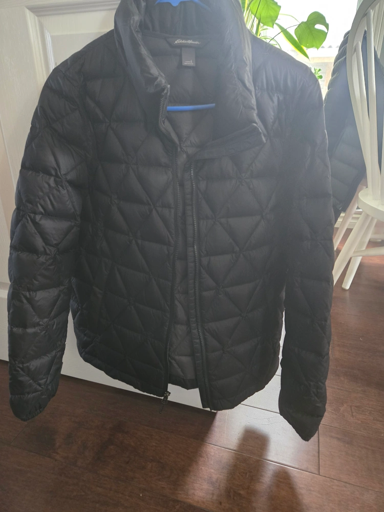 44Selling a gently used Eddie Bauer women's down jacket. It's a size large and in great shape! Perfect for staying warm during those chilly Canadian days