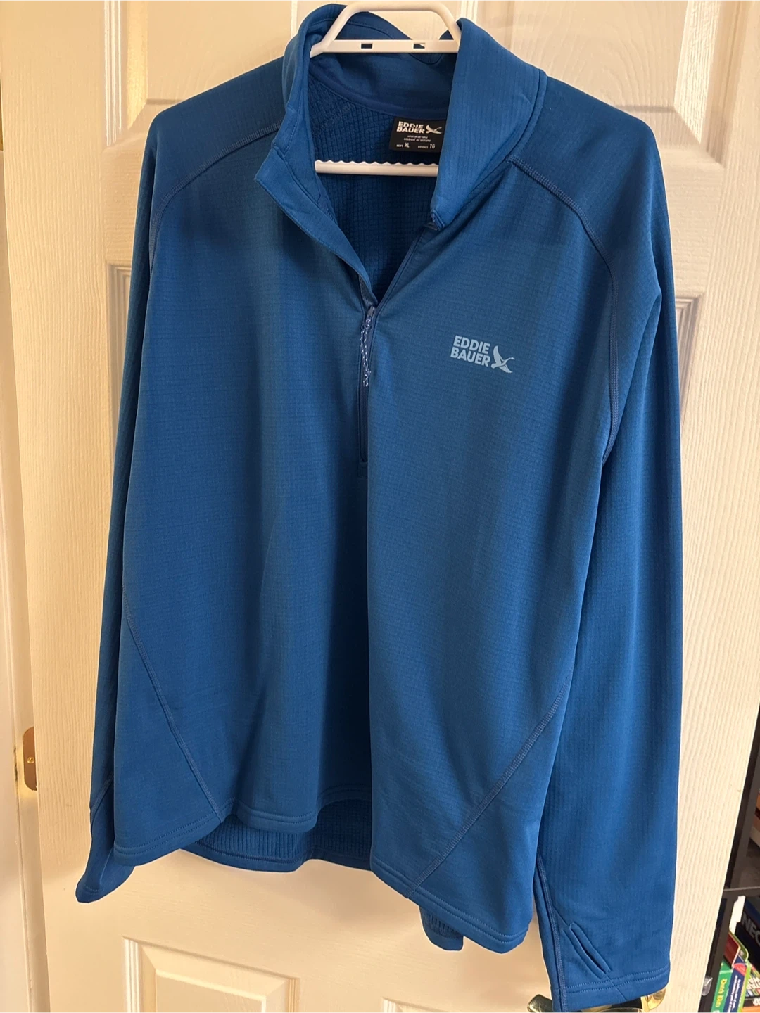Selling an Eddie Bauer 1/4 zip pullover in size XL. It's a nice blue colour and in great condition!