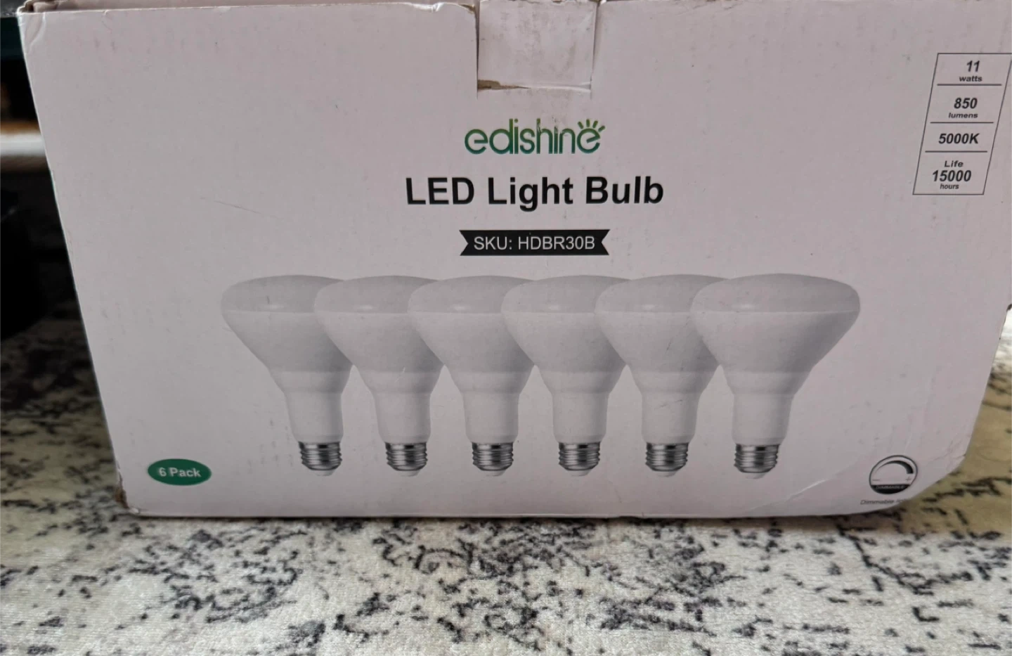 69Selling a brand new, unopened 6-pack of Edishine LED light bulbs. These bulbs are 11 watts and produce 850 lumens of light at 5000K. They have a long life of 15,000 hours. Box included