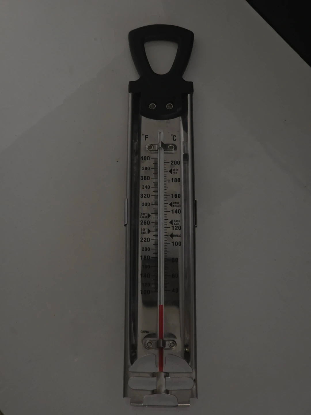 This is a Taylor Classic Candy and Deep-Fry Analog Thermometer. It has markings for Fahrenheit and Celsius. The thermometer is made of metal and plastic with a clip for attaching to pots.