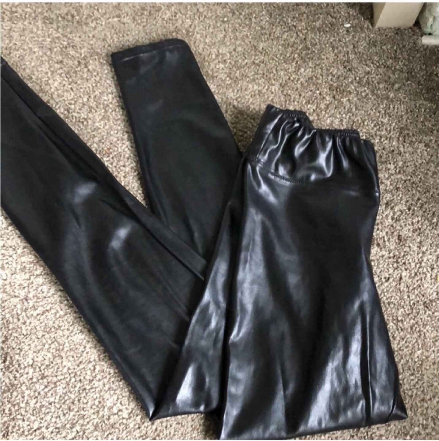 These Wilfred Free leggings are a stylish addition to any wardrobe! They come in a sleek black faux leather and are a size small. Perfect for dressing up or down, these leggings are sure to turn heads
