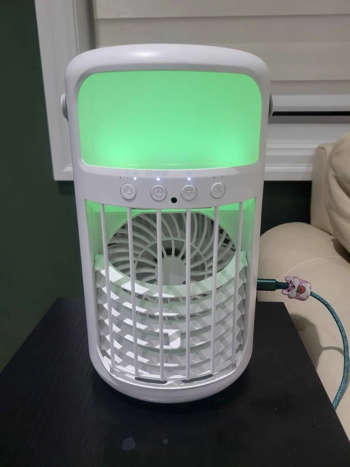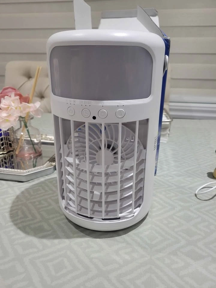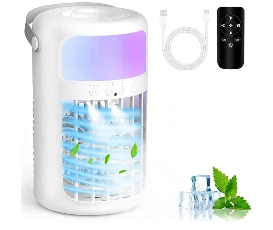 2025 Upgraded 4-IN-1 Ultra-Quiet Design Portable AC Unit with 2 Cool Mist & Speeds, 1500ml, Remote Control Air Conditioner Evaporative for Home, Office, Bedroom, Camping. Front vents slightly loose.