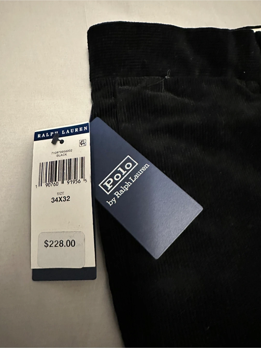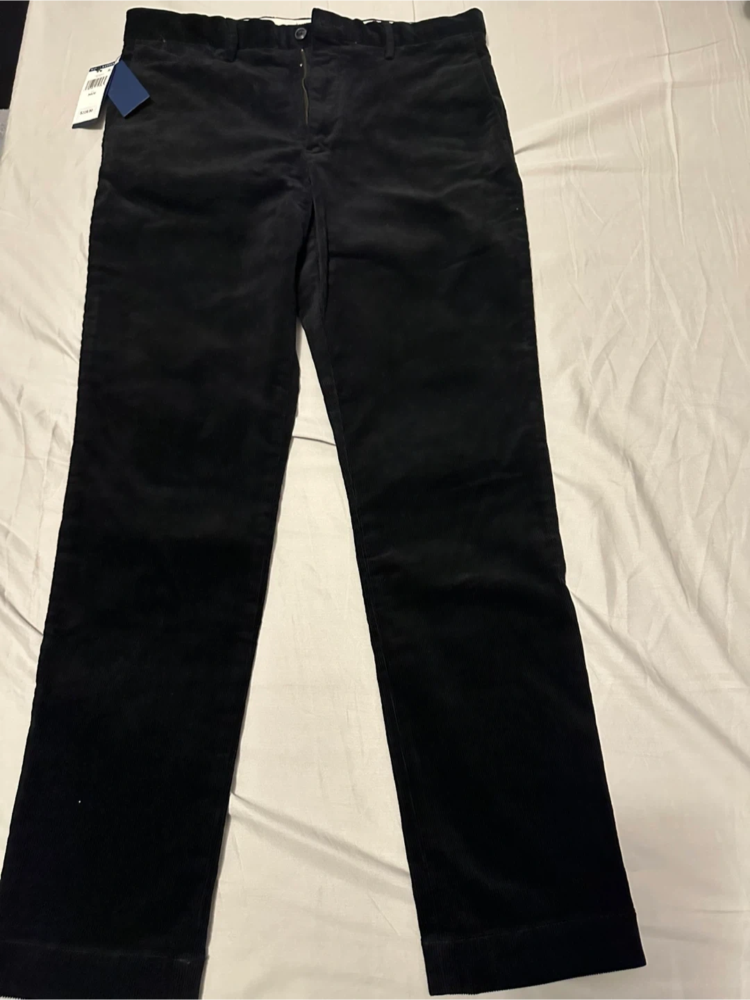 Authentic Polo by Ralph Lauren black corduroy pants. They're a size 34x32 with a slim fit. Corduroy material. Very classy.