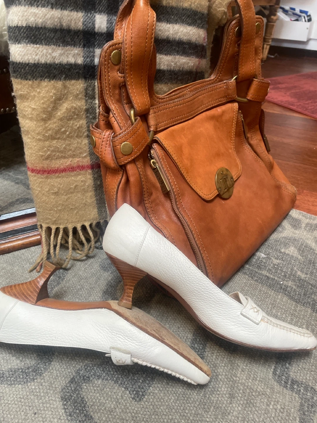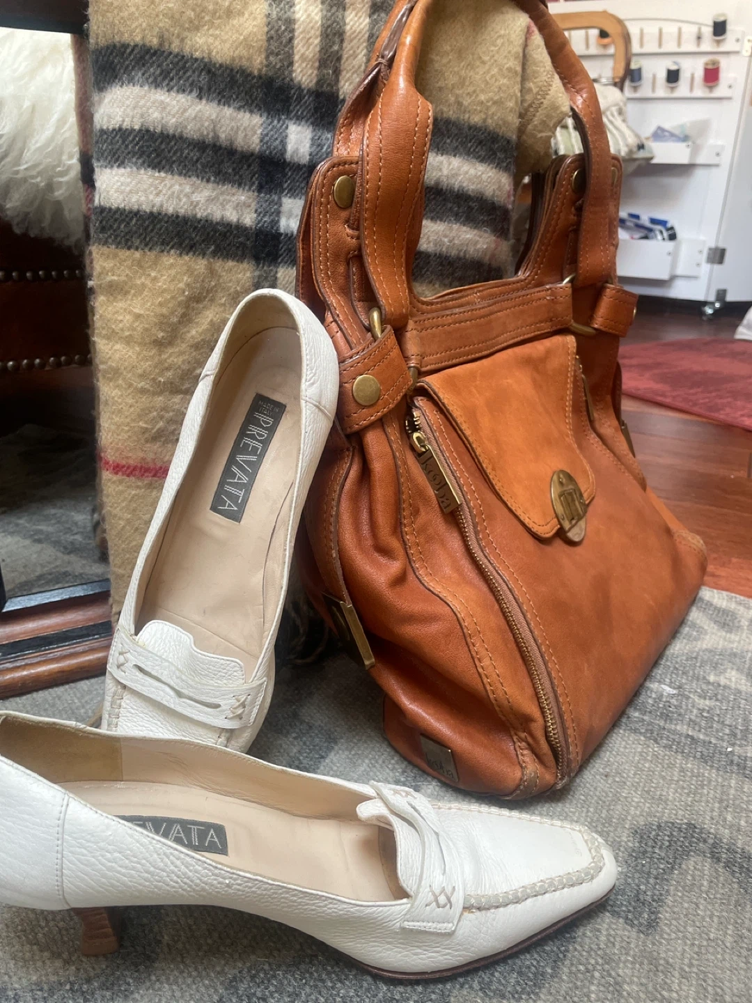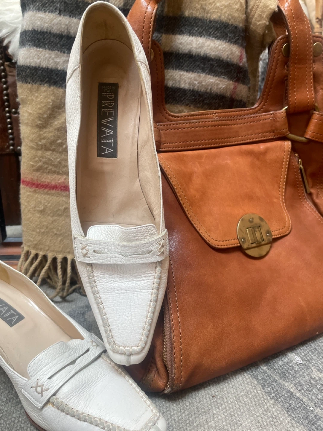 Spring Set:PREVATA White Leather Loafers - Size 9