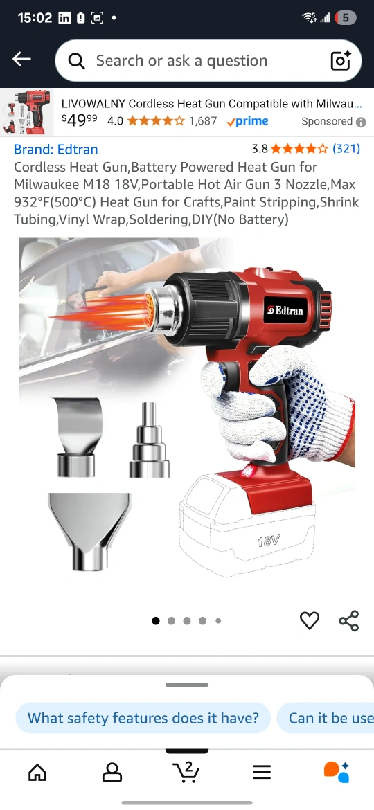 I'm selling a brand new Edtran Cordless Heat Gun Kit! It comes with the original box and all included components. Perfect for crafts, paint stripping, shrink tubing, vinyl wrap, soldering and DIY projects battery not included compatible with 18 v battery